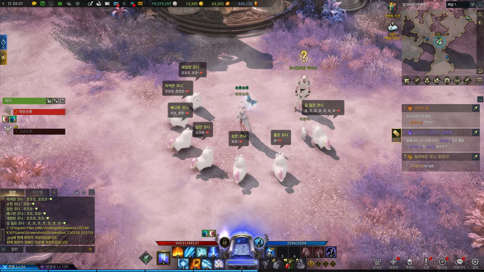 엘가시아의 퀘스트들과 모험의 서 채우기 중. 그러다가 만난 길 잃은 코니,,