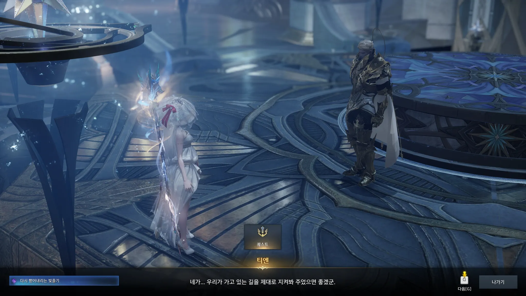 루페온의 부재에 대해서는 시간이 걸리더라도 확실하게 알아보고 싶다는 니나브. 라우리엘이 왜 검의 원탁 아래에 큐브를 숨겨두었는지도 의문이다.