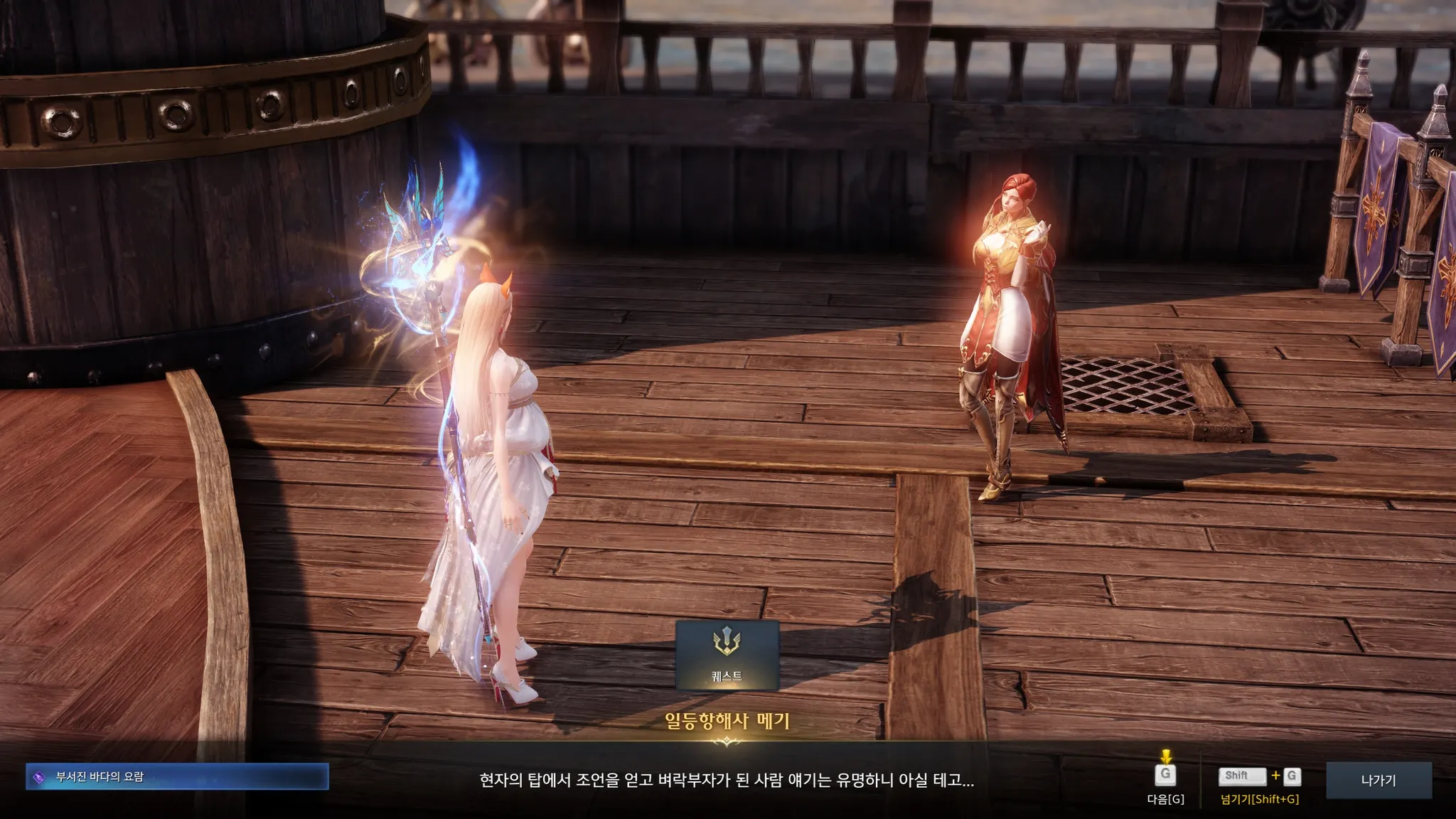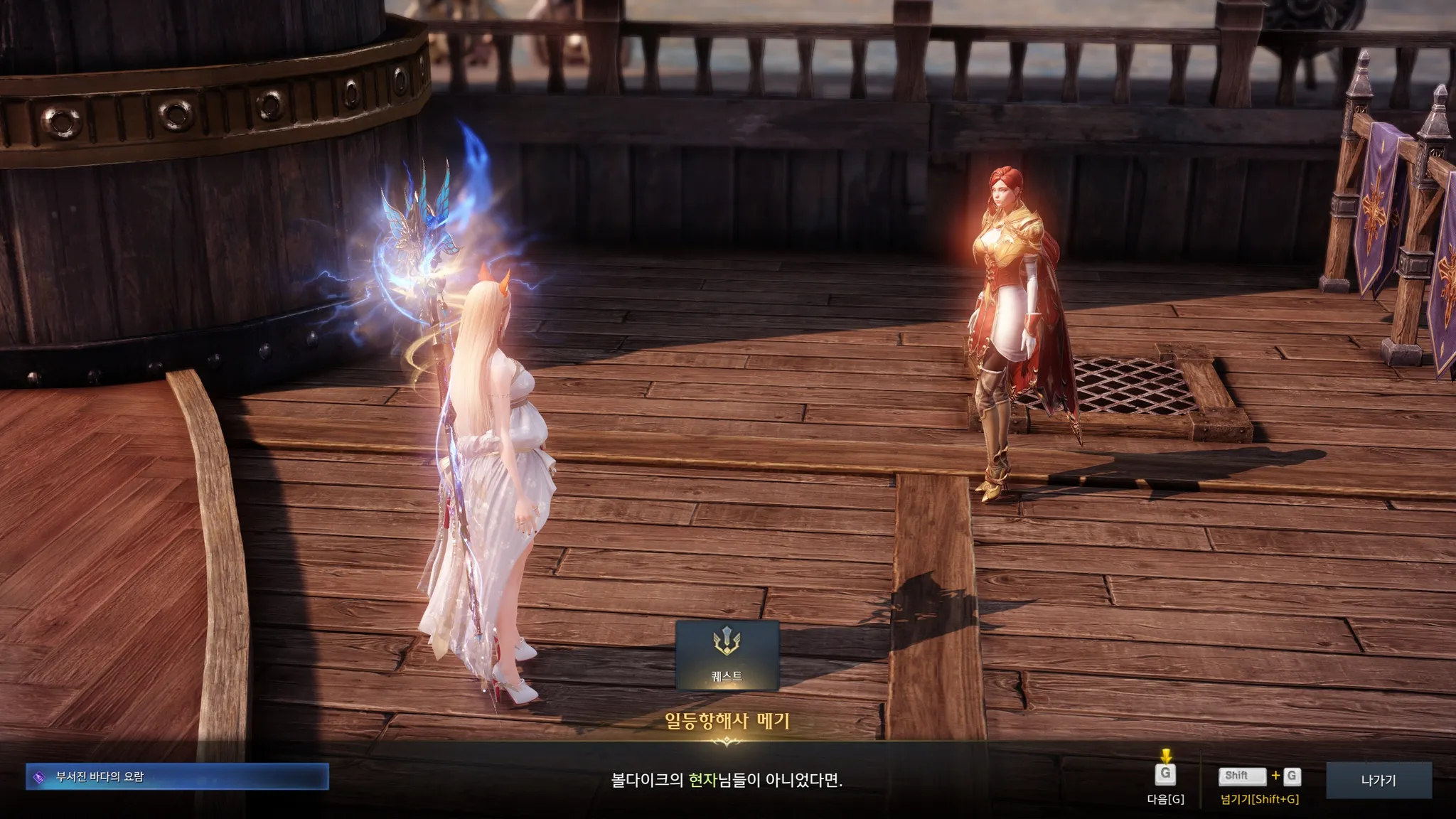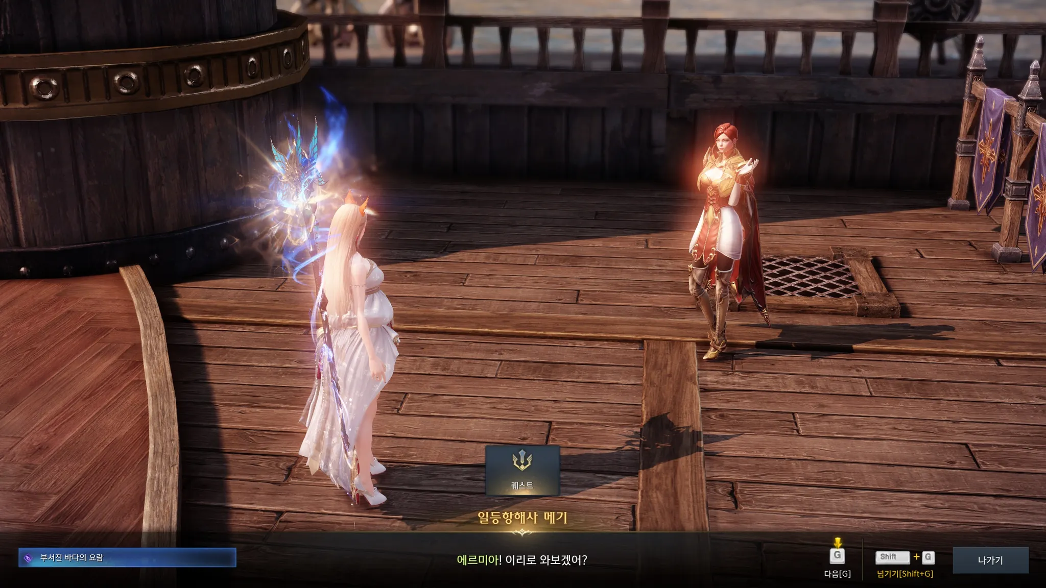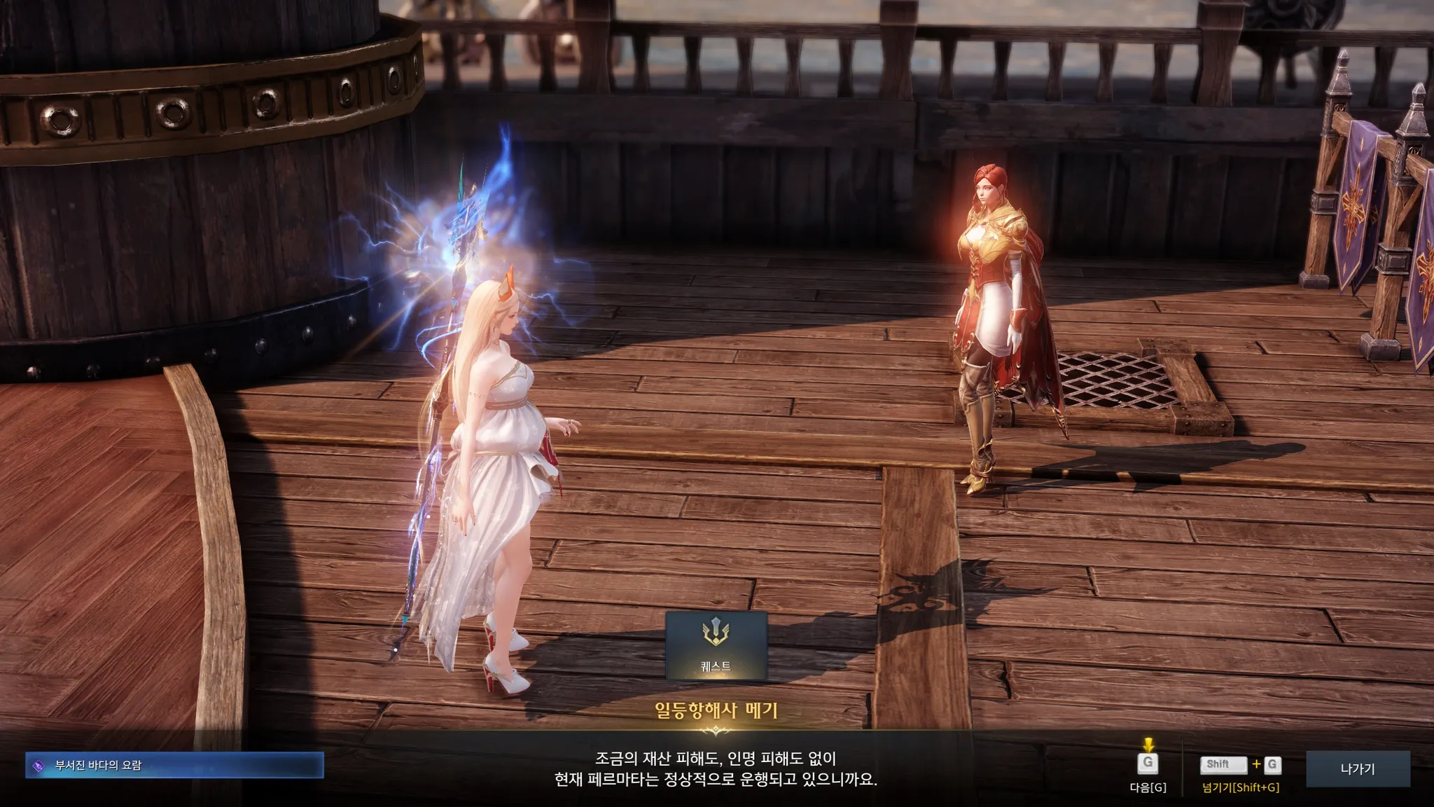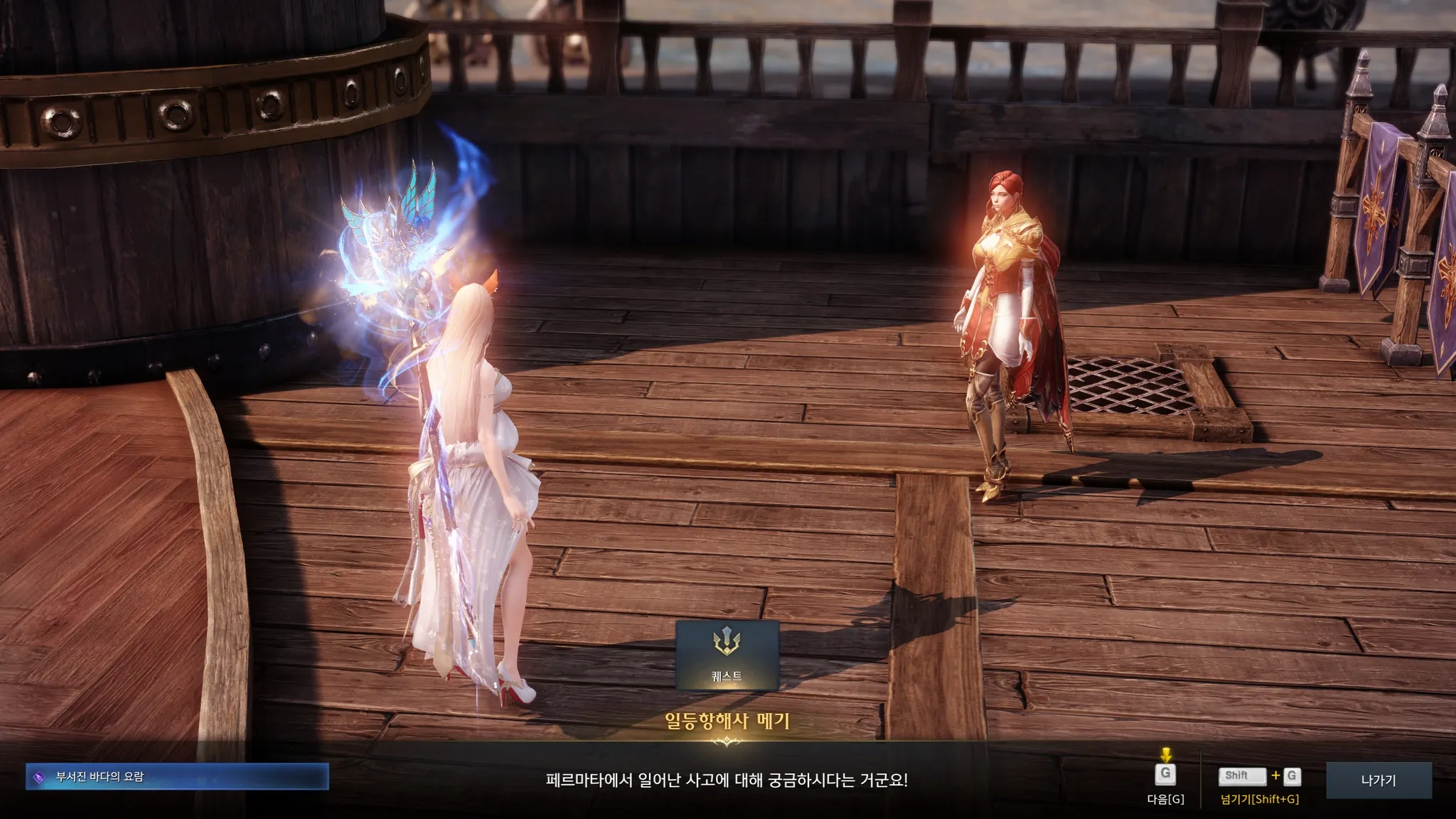 페르마타에서 일어난 사고에 대해 묻기 위해 갑판에 있는 항해사 메기를 찾았다.