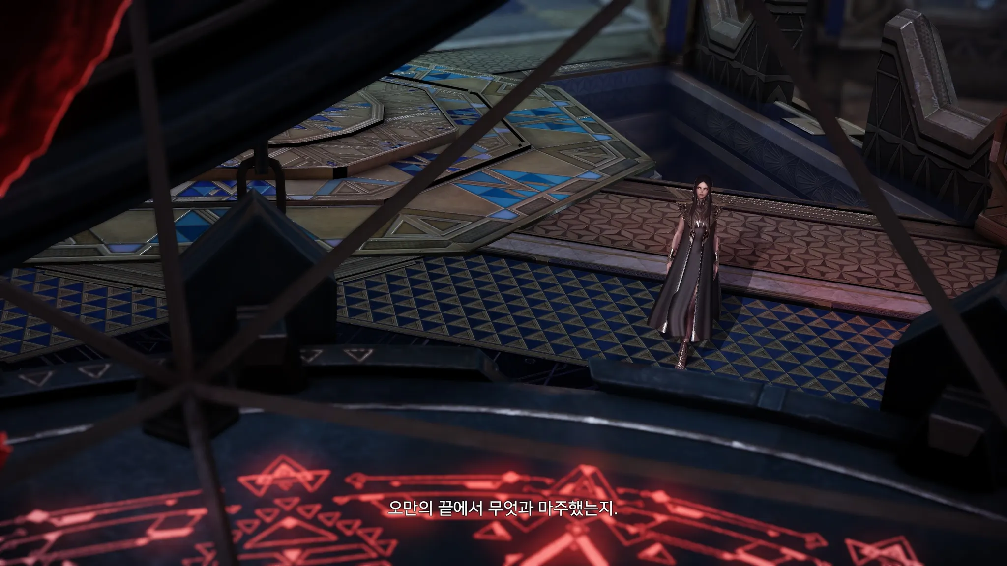 새빨간 구체를 들여다 보고 있는 포카혼타스. 옷을 보니 볼다이크 사람인가보다.