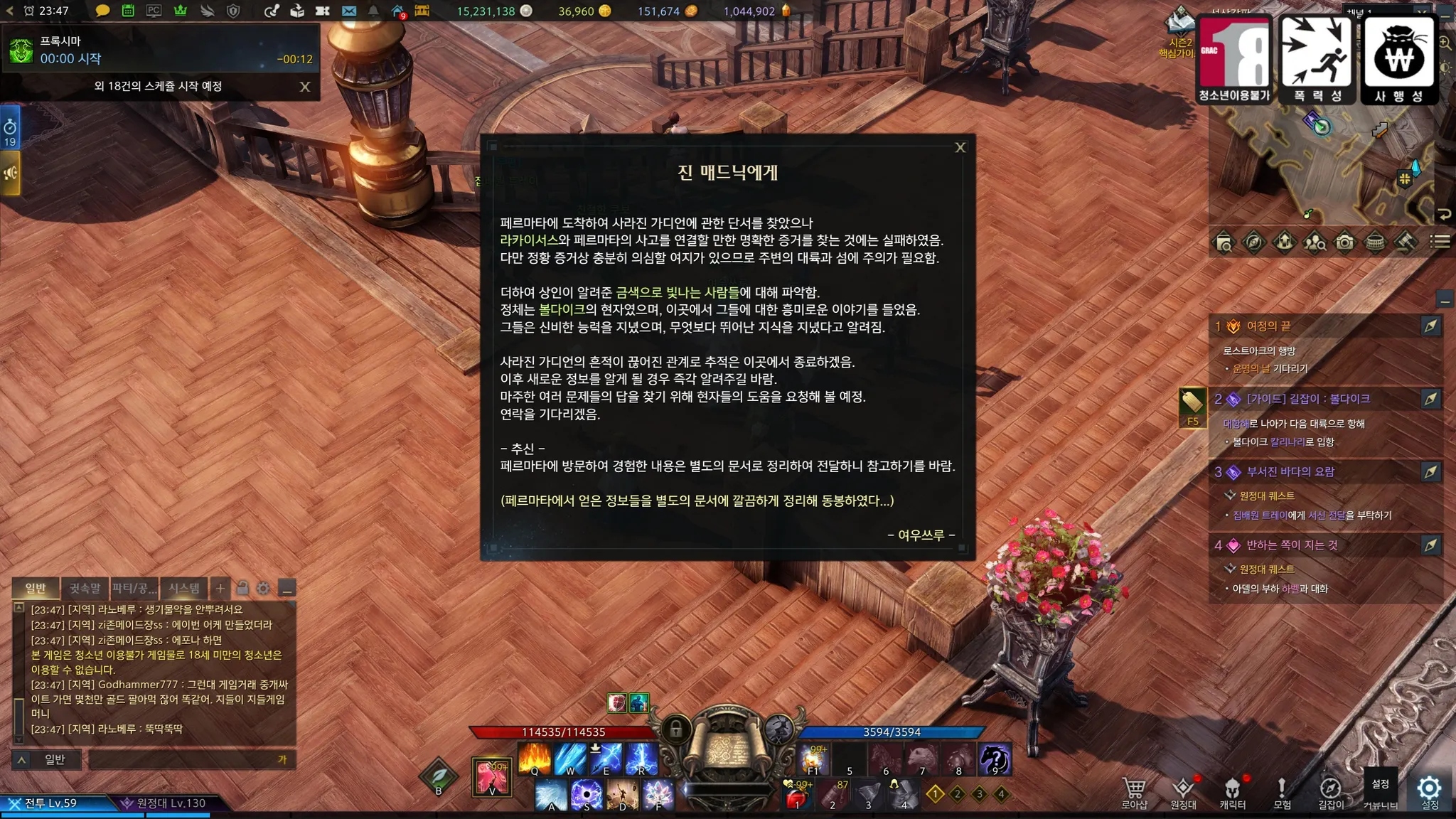 무시무시한 말과 함께 저렇게 끝남,, 도대체 저 포카혼타스는 빌런인가 아닌가. 진 매드닉의 부름 퀘스트 별 생각없이 진행했는데 알고보니 볼다이크를 위한 빌드업이었고! 그리고 페르마타 사건 보다가 현자들 너무 멋있어서🥹 홀라당 반한 나. 볼다이크 빨리 가고싶어서 버스 열심히 타서 1520 만들어 놨었는데, 새로운 스토리 전에는 마음을 가다듬어야해서 요즘 마음의 준비를 하고 있었다. 근데 이제 마음의 준비 끝남ㅎ 빨리 현자들 만나러 가야됨ㅎ 궁금해서 안 되겠다. 흡