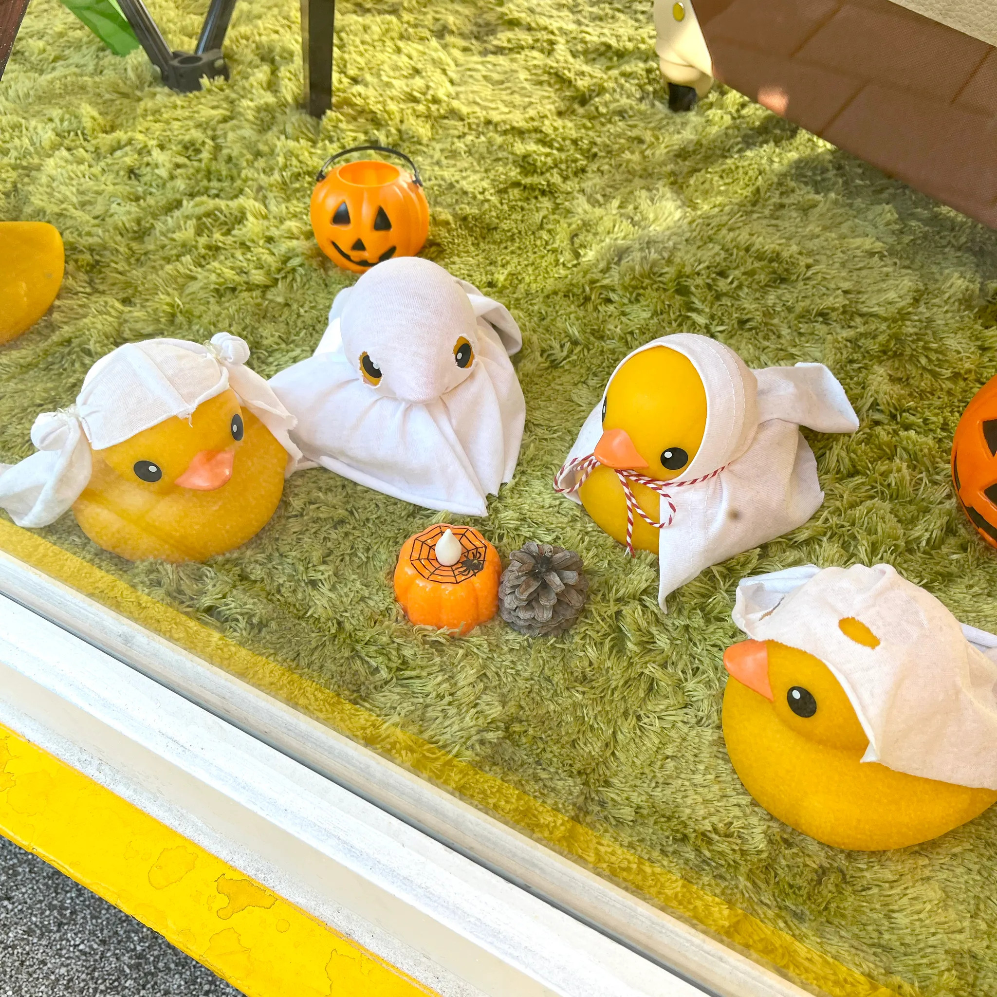 할로윈이라고 저렇게 꾸며놓은 것 같은데, 왼쪽에서 두번째 오리가 너무 하찮고 귀엽다