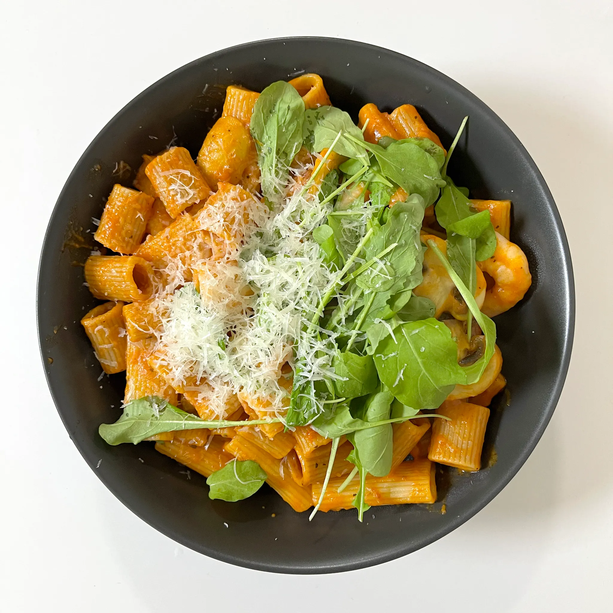 동생이 퇴근하고 놀러와서 같이 해 먹은 우리 부부의 주특기, 리카토니 새우 로제 파스타.