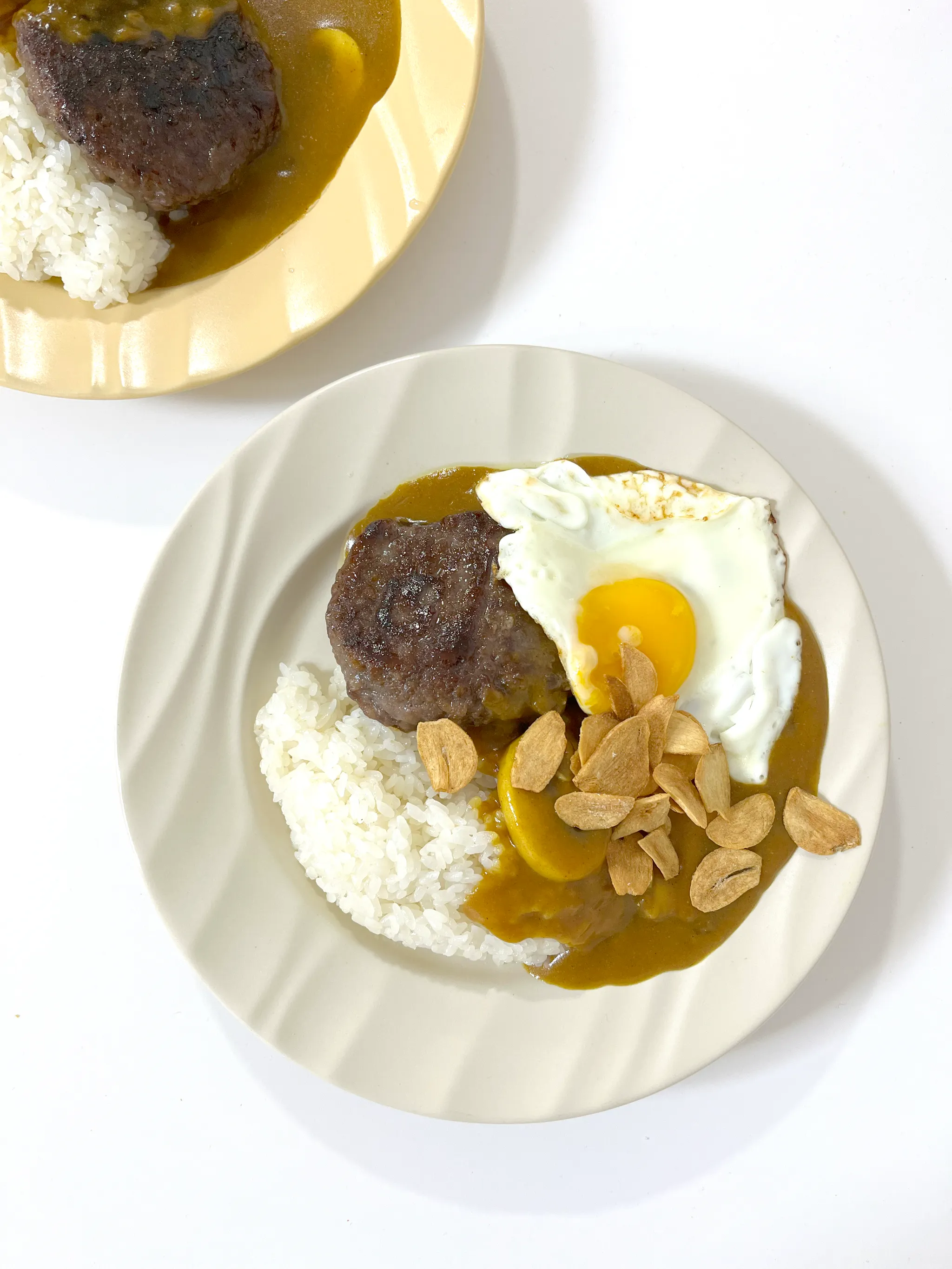 컬리에서 주문한 델리치오 와규 함박 스테이크랑 S&B 골든카레로 만들어 본 스테이크 카레 덮밥.