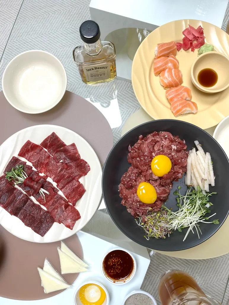제일 친한 친구가 와서 육회랑 육사시미 시켜먹었다.