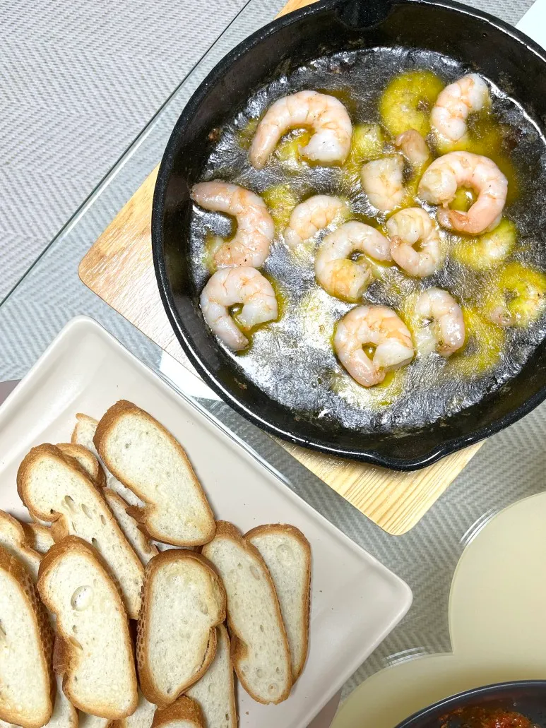 그 중 메인은 우리 부부의 주특기, 감바스 알 아히요  새우를 수십마리 때려넣는 것.