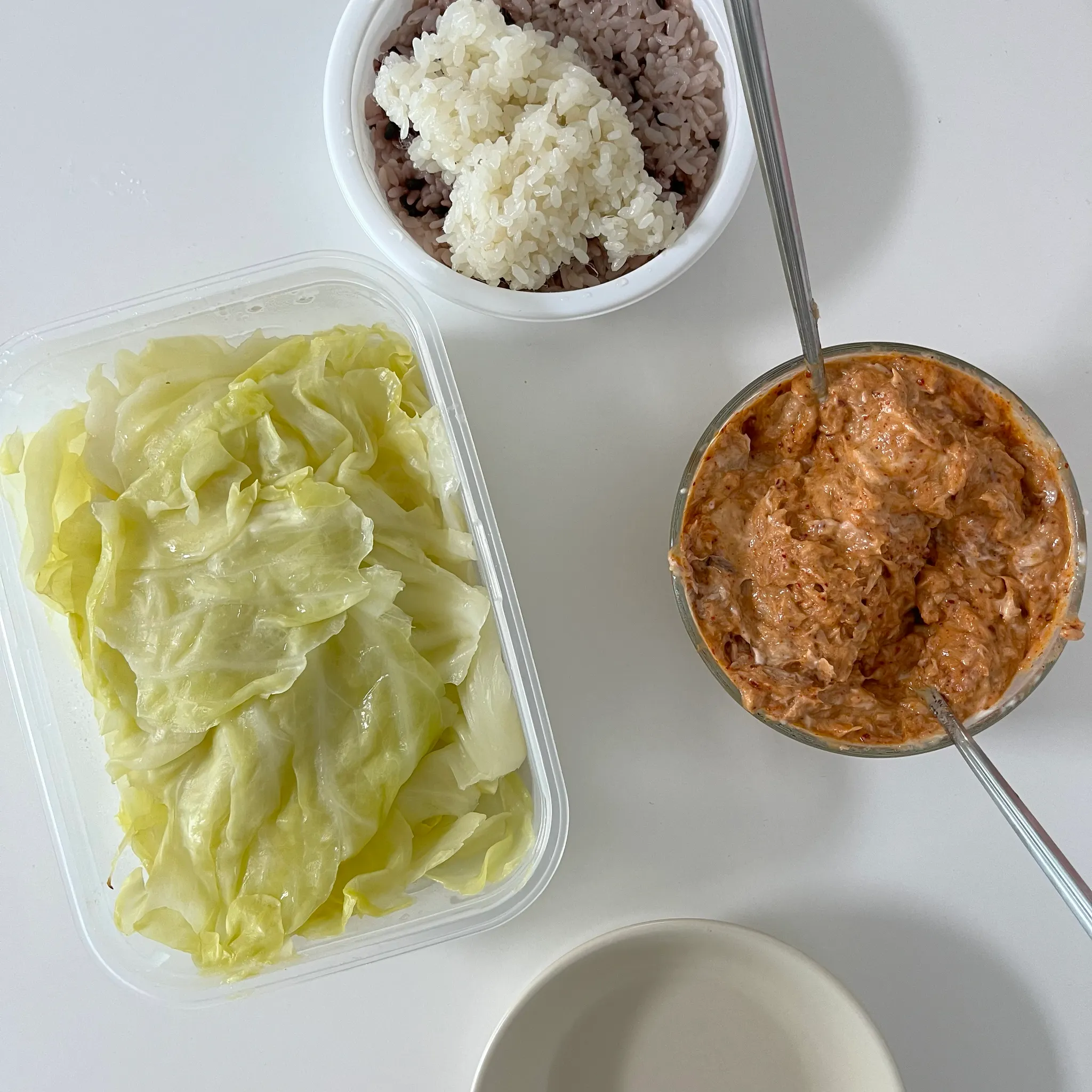 월요일의 시작은 동생의 최최최최최애 메뉴인 양배추찜과 참치 고추장 마요. 간단한데 동생을 사로잡을 수 있는 나의 치트키. 먹는 와중에도 계속 맛있다는 얘기 들으니까 기분이 좋아졌다.