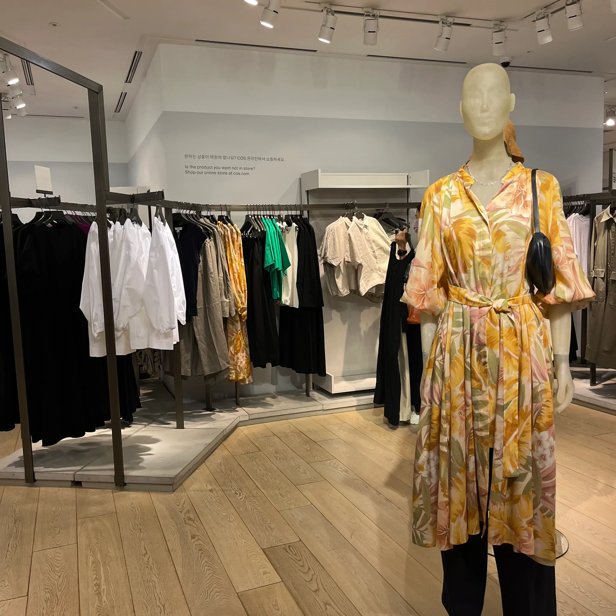 그리고 마네킹이 입고있는 플로럴 프린트 브이넥 미디 드레스! 컬러도 산뜻하고 너무 예뻐서 입어봤는데, 너무너무 예쁜데! 평상시에도 잘 입을까 싶어서 일단 보류. 아른아른 거리면 다시 찾기로.
