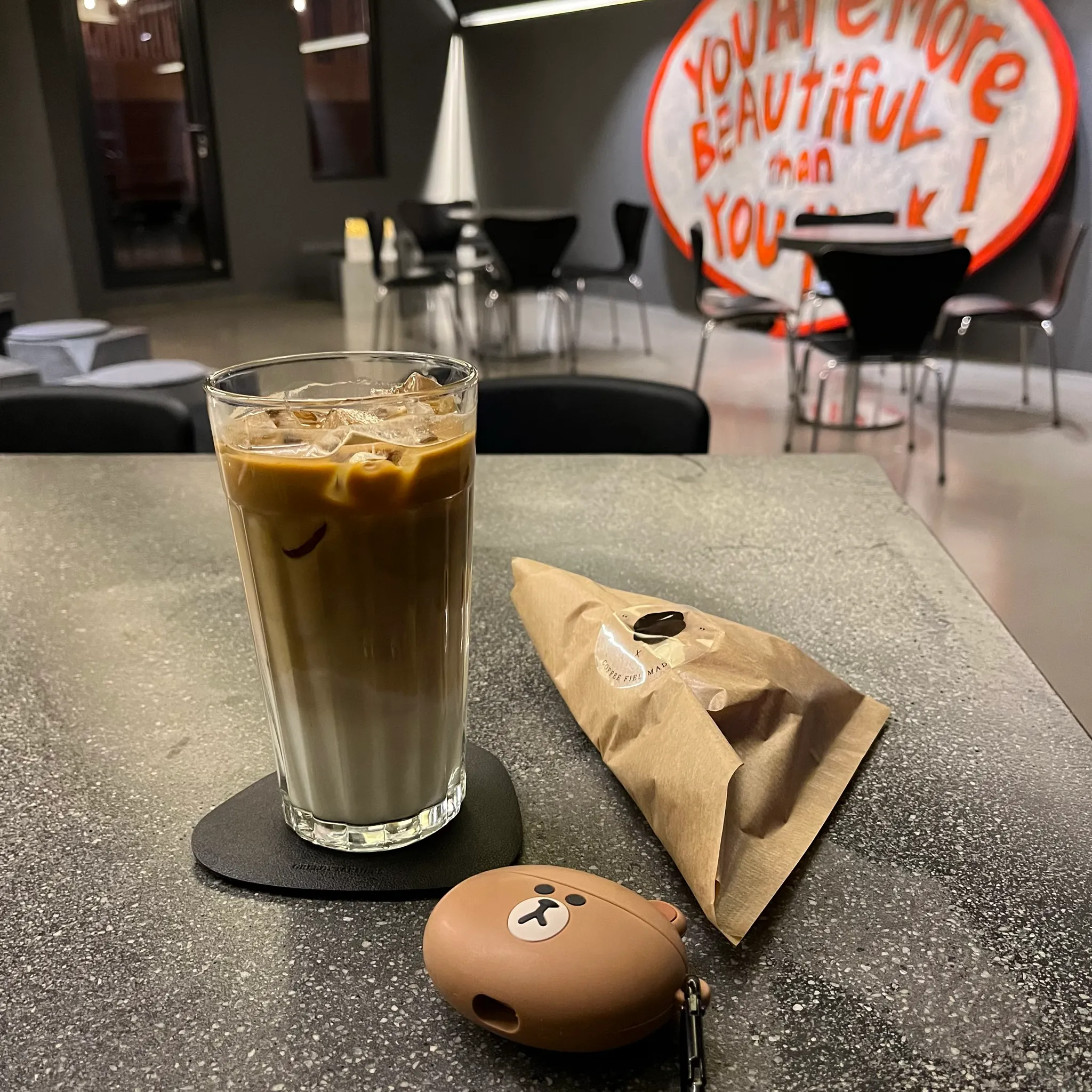 피어싱 바꾸고 짝꿍 회사 근처 카페로. 짝꿍이 맛있다고 알려준 카페였는데, 아이스 카페라떼 한 모금 마시자마자 오?했음. 종종 짝꿍 퇴근 기다릴 겸 작업하러 와도 될 것 같다.