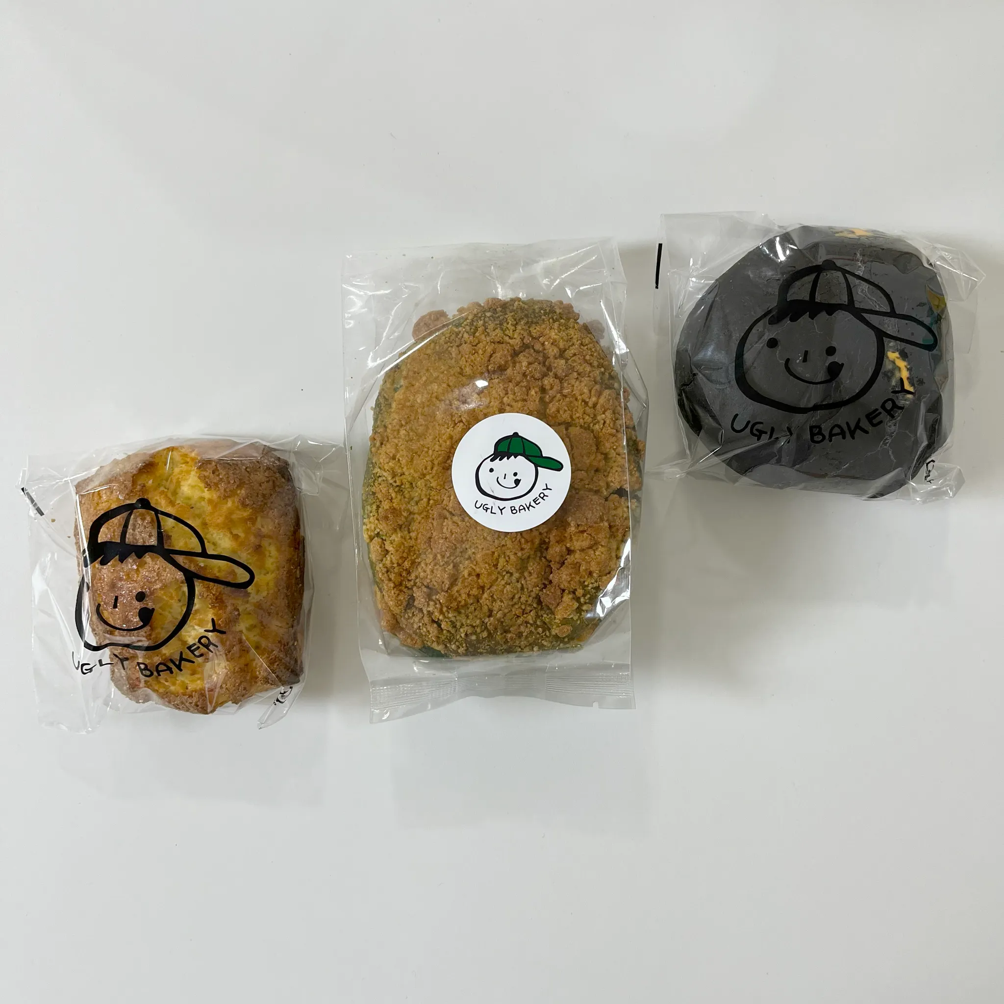 어글리 베이커리에서 사온 빵들. 왼쪽부터 순서대로 버터스콘, 말차맘모스, 치즈좋아해. 셋 다 먹어본 후기는….. 이 빵집이 내 취향은 아닌걸로. 나는 치즈 폭탄! 엄청난 뚱카롱! 이렇게 뭔가를 극대화한 빵은 잘 안 맞는 것 같다.