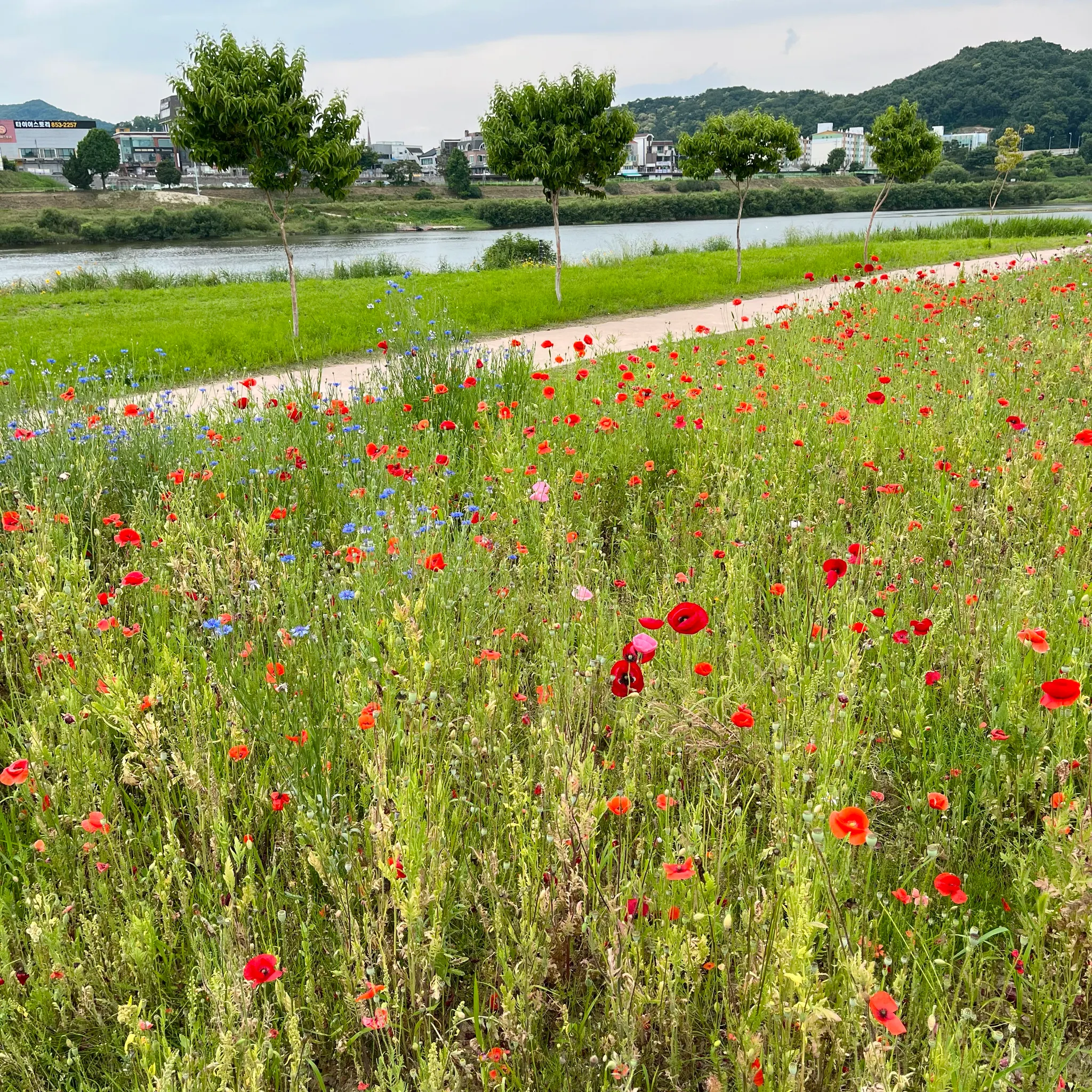 사진으로 담고 싶어서 노력하다가 포기하고 눈으로 감상한 꽃밭