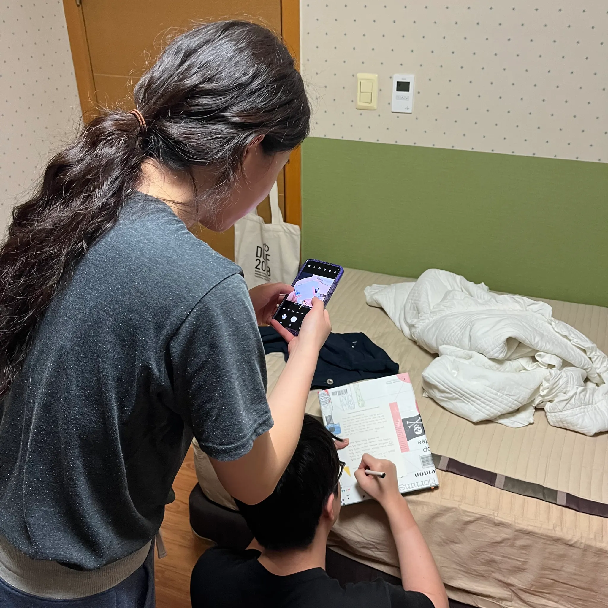 엄마한테 생일카드 쓰는 중. 동생이 뒤에서 사진 찍는 이유는ㅎㅎㅎㅎㅎ 몇 달 후에 아빠 생일 때 내용 재탕한다고ㅎㅎㅎㅎㅎㅎㅎㅎㅎ 진짜 너무 웃긴 사람이다 내 동생ㅎㅎㅎ