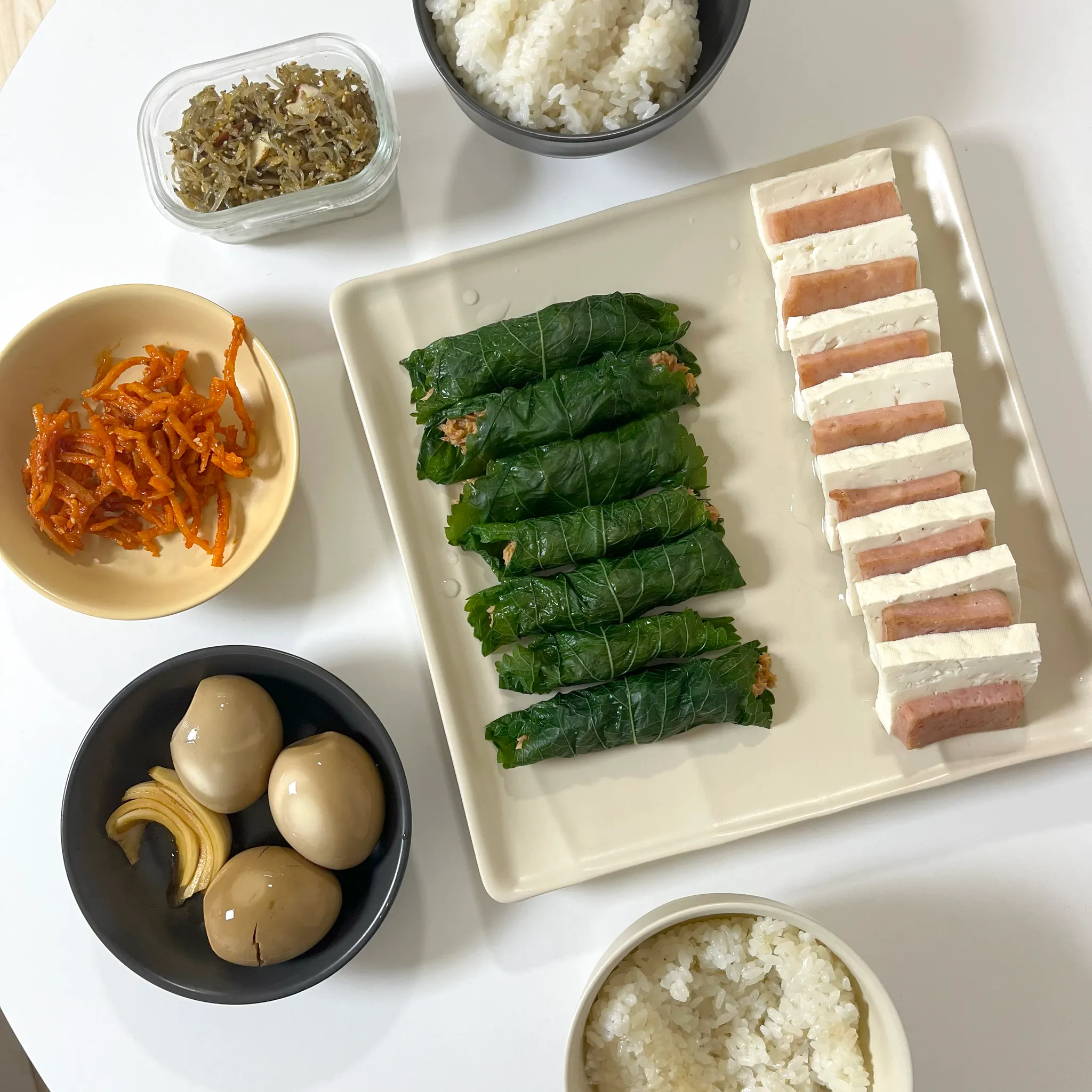 주말에 대전 가기 전에 냉털을 위한 저녁상. 깻잎이랑 두부랑 계란을 서둘러 삭제해야 했다ㅎㅎㅎ 레시피 보고 깻잎 참치쌈장쌈 만들어봤는데 간 조절 실패