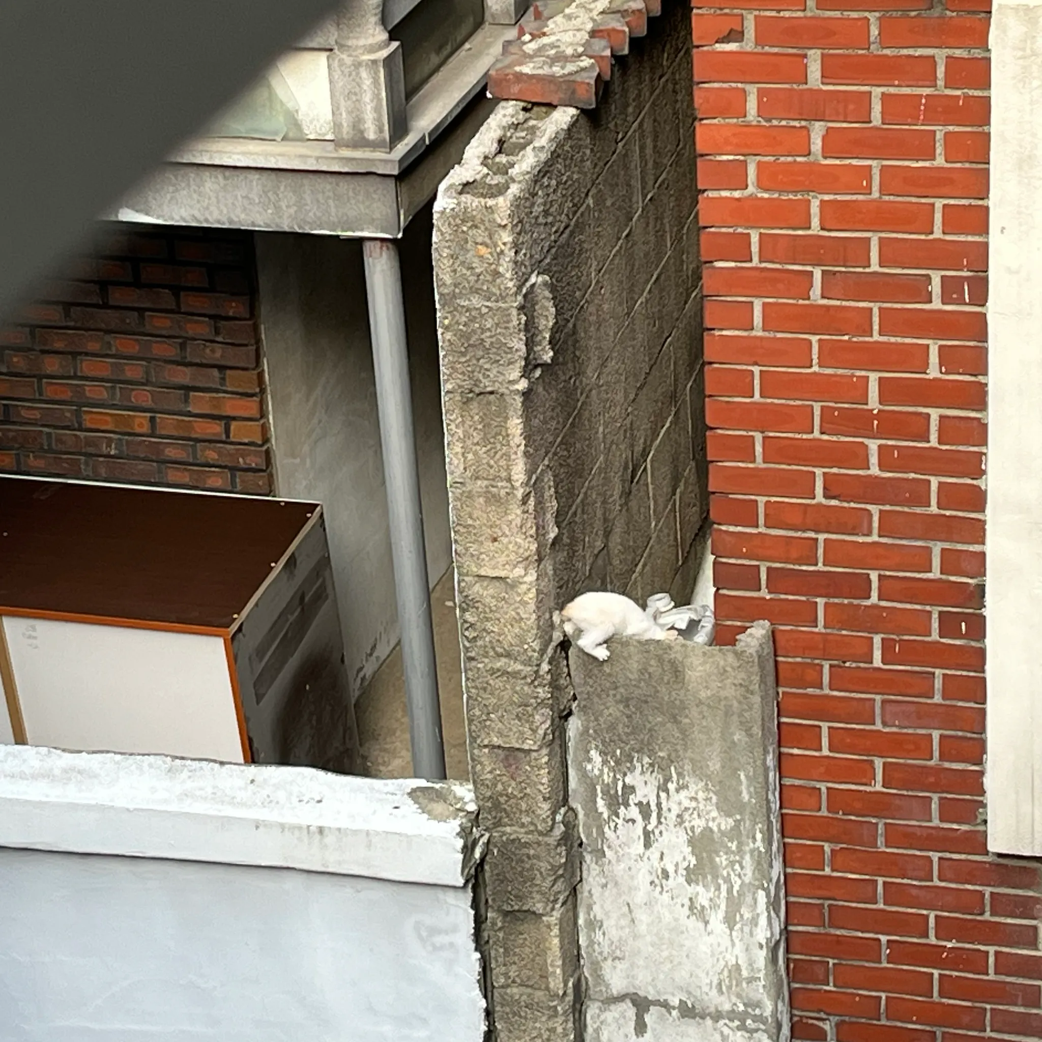 각자 일하고 작업하고 있는데 세탁실 쪽 밖에서 아기 고양이 울음소리가 들려서 내다보니 하얀 아기냥이 애옹애옹 울고 있었다. 엄마 찾는거니,,?