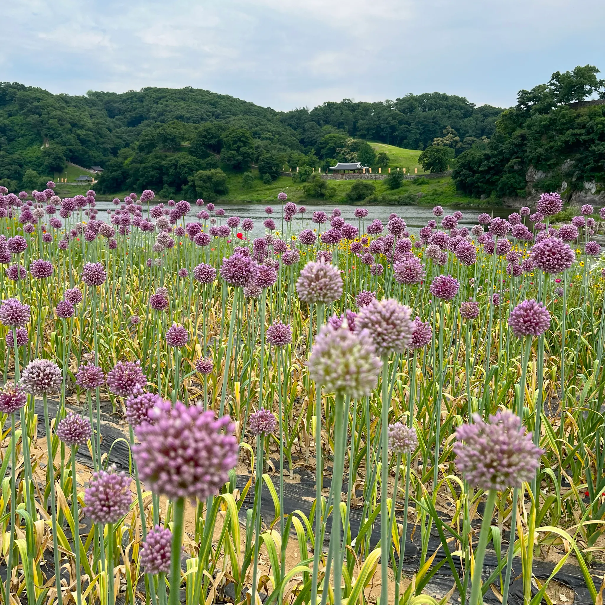 코끼리 마늘 꽃인데 저렇게 보라색 요술봉처럼 생겼다. 키도 꽤 큼!!