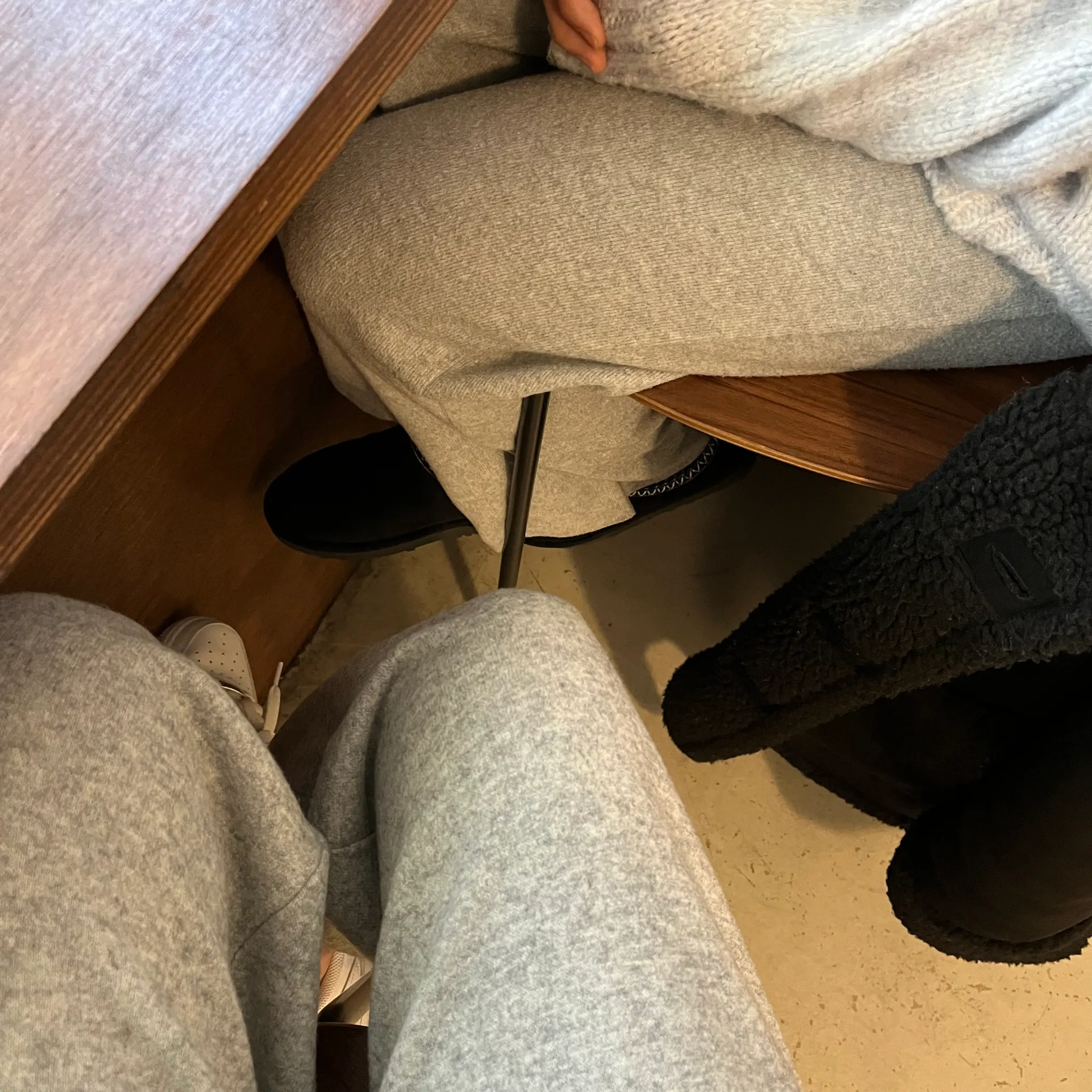 블로그 글 쓰다가 집 앞 카페에 동네친구 만나러 나갔다. 미리 맞추기라도 한 듯이 둘 다 회색 바지에 검정색 아우터를 입고 온 우리