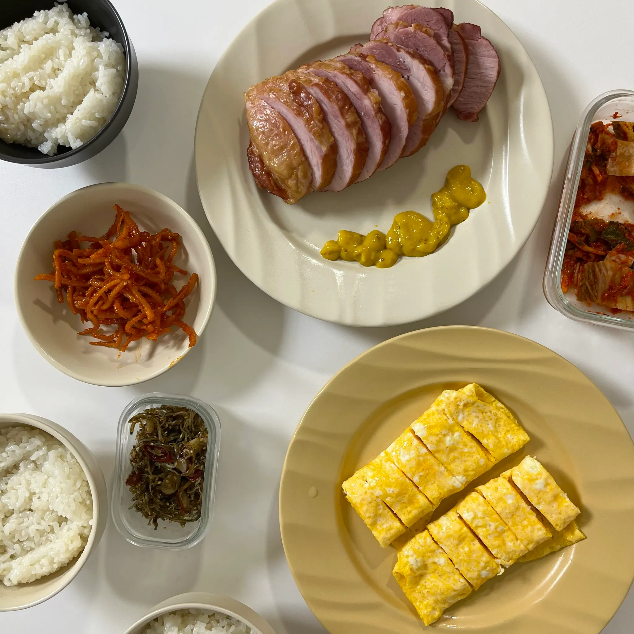 짝꿍 퇴근 후 셋이 먹었던 저녁 만찬. 짝꿍이 회사에서 받은 목우촌 고기! 식감도 부들부들하고 육즙도 많고 기대 이상으로 맛있었다.