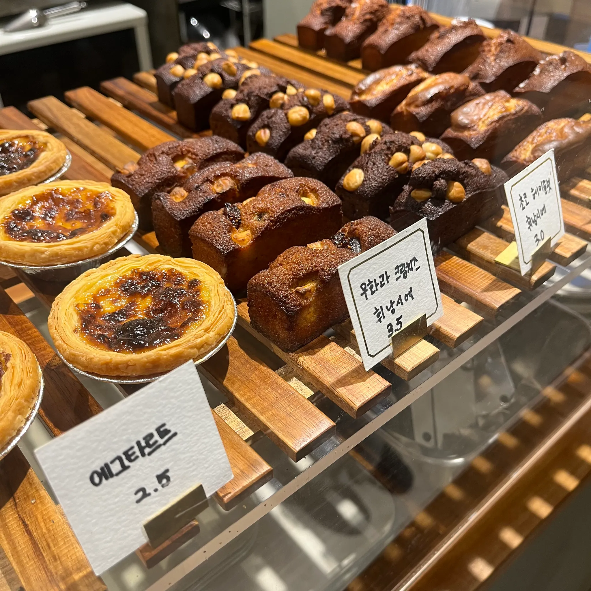 지난 번에 왔을 때 미리 찜해두었던 에그타르트와 무화과 크림치즈 휘낭시에도 같이 주문!