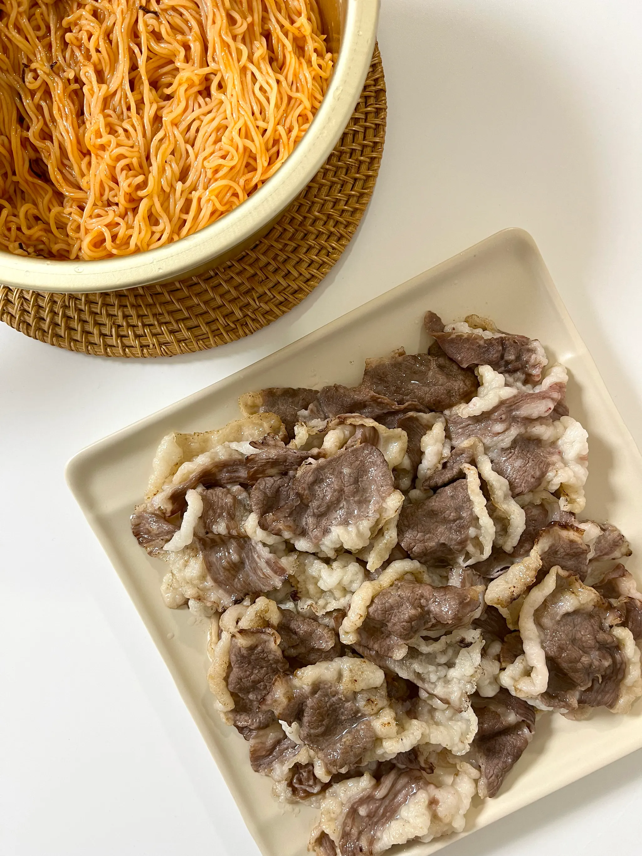 이번 달 빨간 음식은 소고기로 픽한 나. 셋이서 차돌박이 비빔면을 해 먹었다. 정말,, 고기가 먹어도 먹어도 줄어들지 않아 뒤로 갈수록 셋 다 배 부여잡고 먹었던ㅎ 아기돼지 세 마리 수준ㅎ