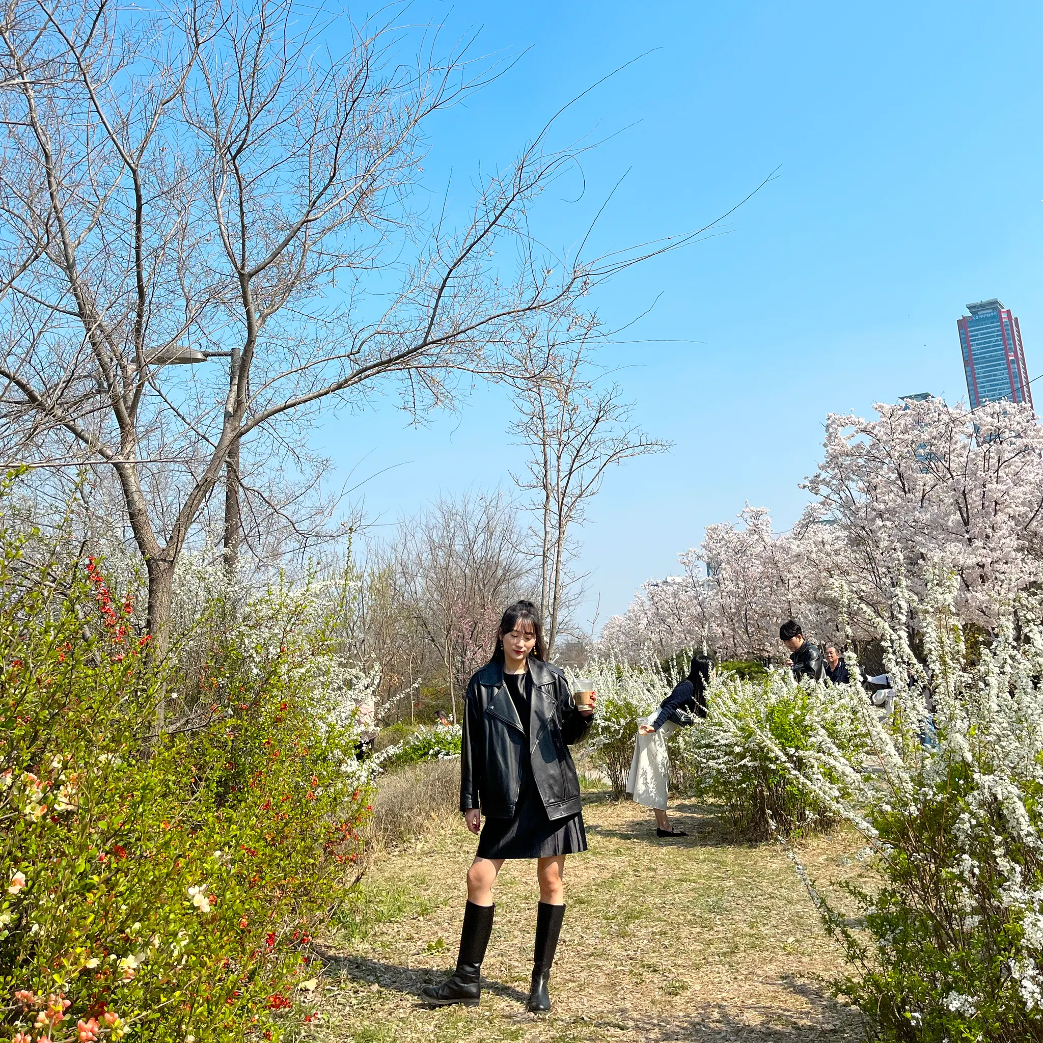 그러다가 사람들의 탄성이 들려서 고개를 들어보니! 불어오는 바람에 벚꽃 잎이 꼭 눈처럼 휘날리고 있었다!!!! 세상에🥹 너무 예뻐🥹 조금이라도 담아보려고 당장 일어나서 영상을 찍었다. 벚꽃 눈이란 바로 이런 것!