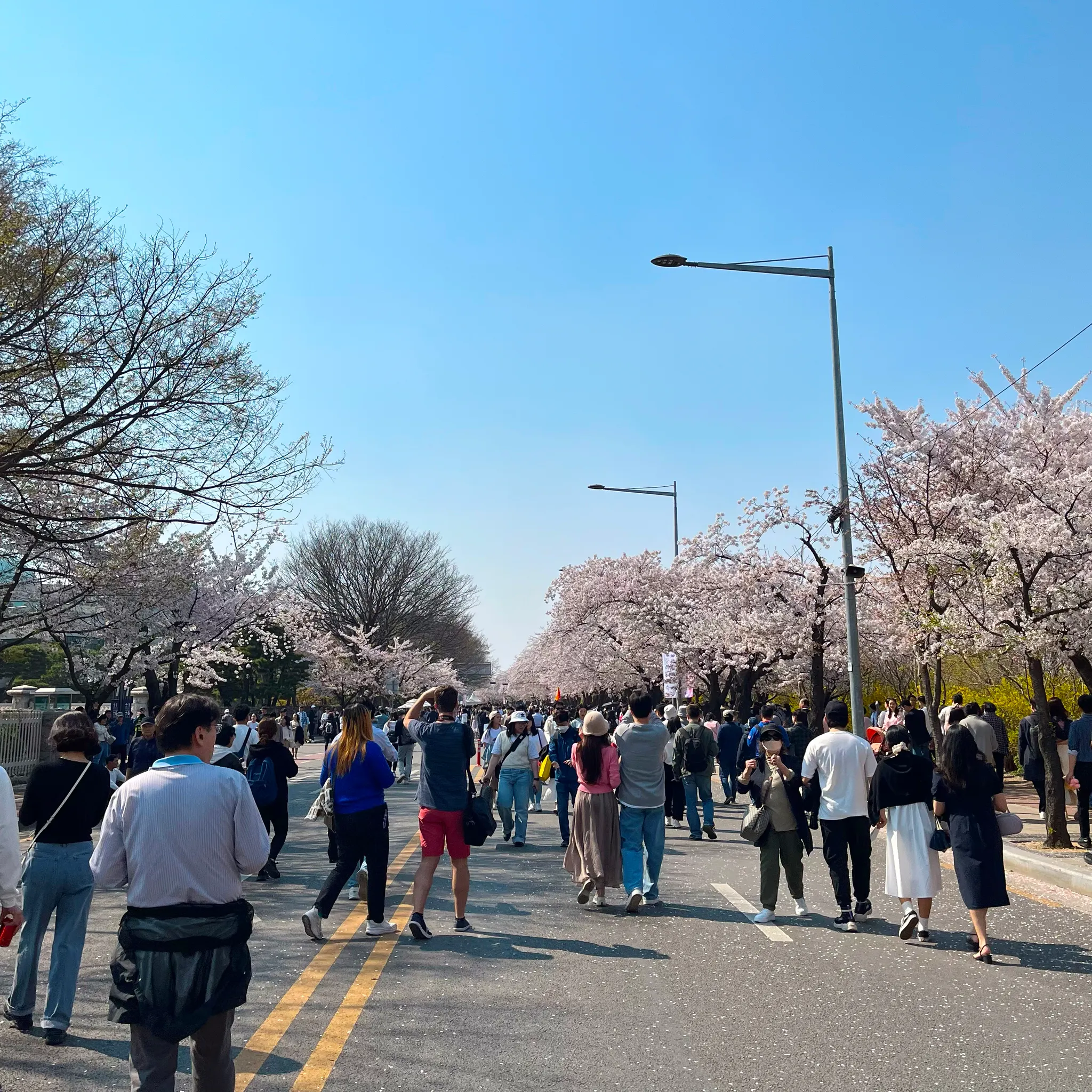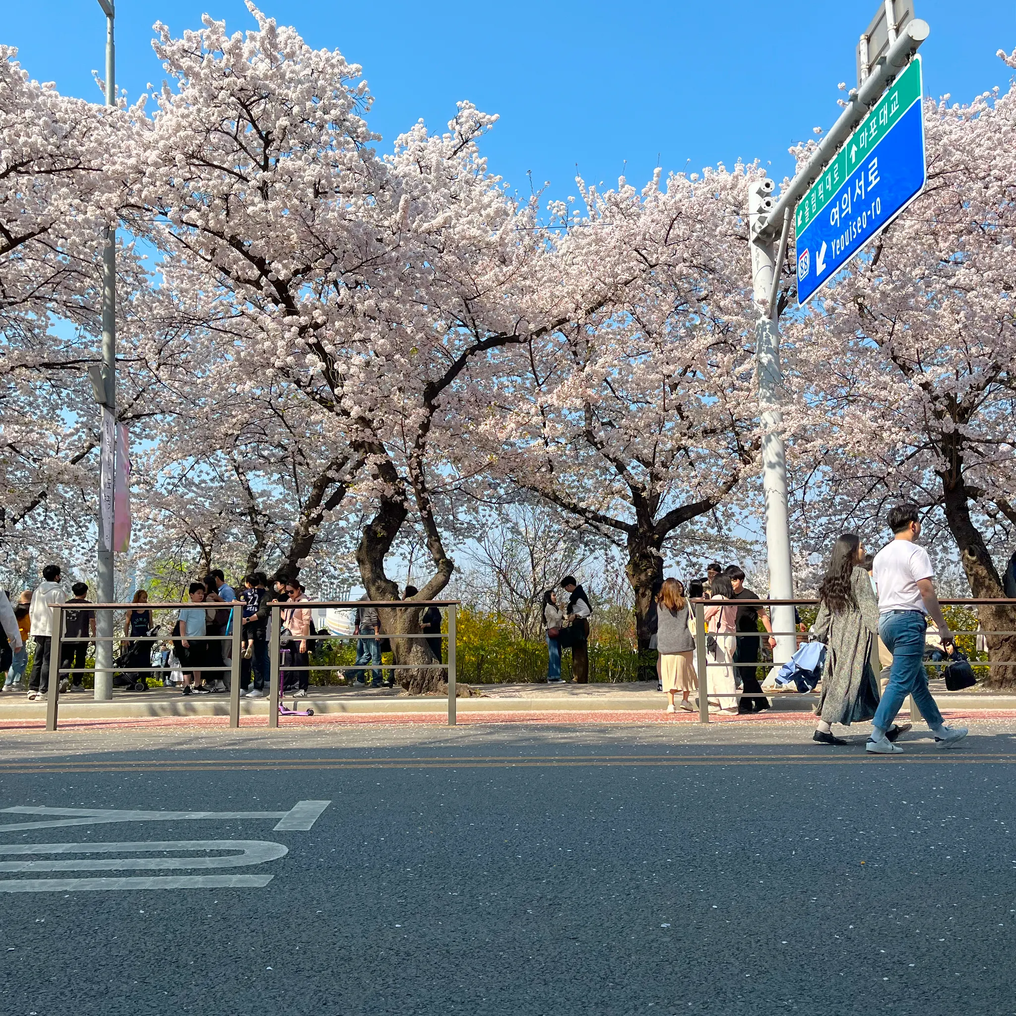 양 옆으로 쭉 늘어서 있는 벚꽃나무 길이 예술인 국회의사당 옆 윤중로 벚꽃길.