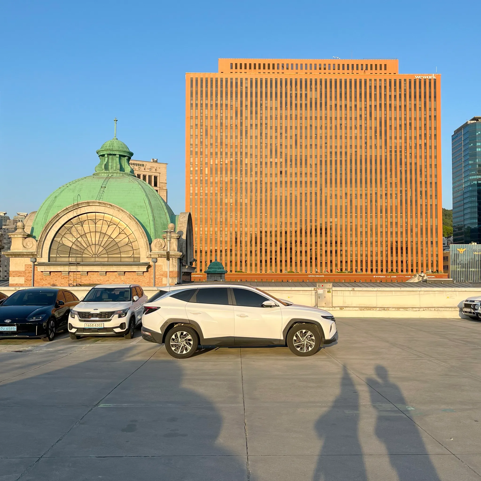 발길 닿는대로 걷다보니 어느 새 서울역 꼭대기 주차장이 나왔다. 여기에서 보니 미생 건물 서울 스퀘어와 옛 서울역 지붕이 한 눈에 보였다. 왠지 이국적인 분위기.