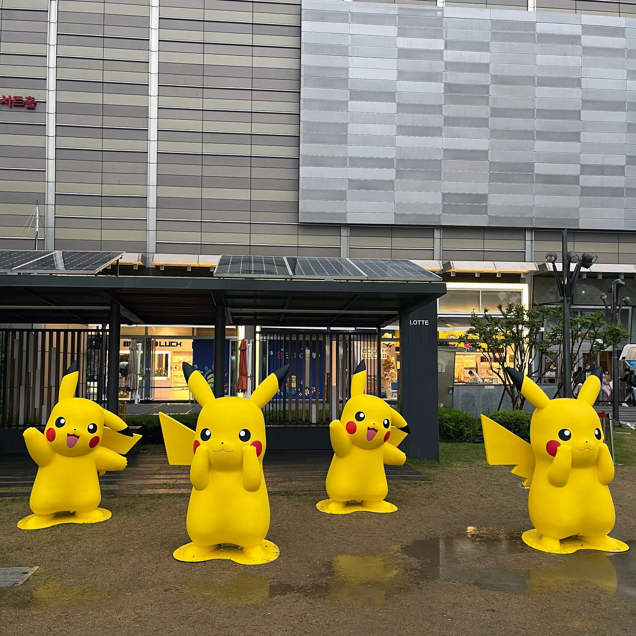 포켓몬 팝업스토어 in 롯데월드몰. 포켓몬 스프링 페스타라는데 롯데월드몰 뒷 마당 쪽에 피카츄가 이렇게 네 마리나!!!  하,, 정말 너무 귀여워 피카츄🥹 여러 부스도 많이 설치해놓고 이벤트고 하고 있었는데 하필 이 날 비가 와서 아쉬웠다. 그리고 어차피 난,, 1세대 애들말고는 모름,,ㅎ