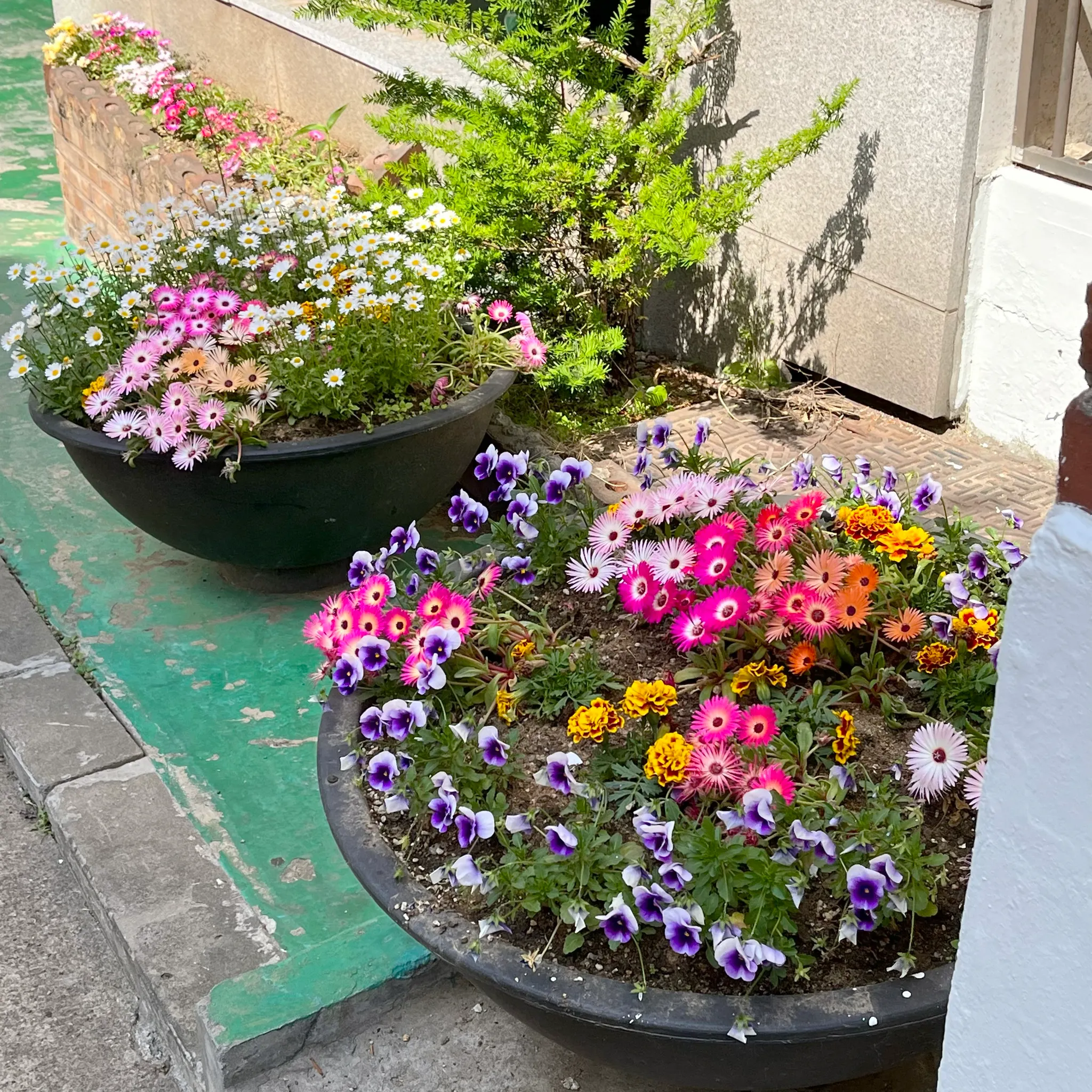 앞머리가 너무 길어서 조금 느끼해진 것 같아서ㅎ 앞머리 커트하러 미용실 가는 길. 커다란 밥그릇에 꽃들이 있는 것 같다. 거인의 채소비빔밥