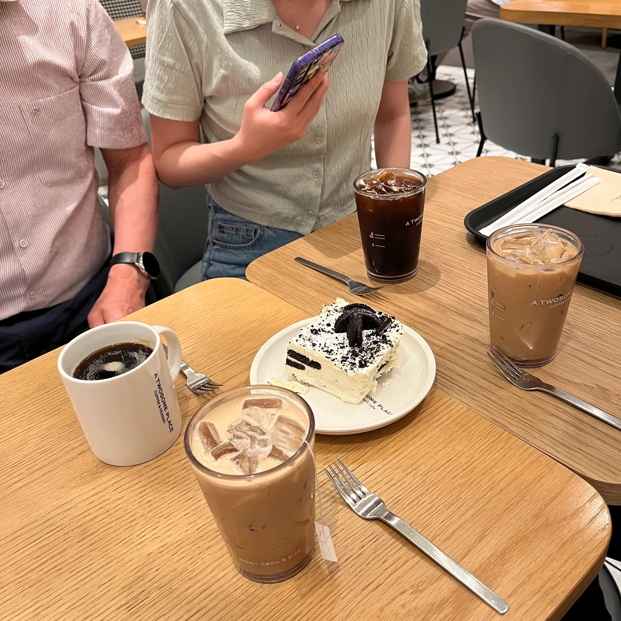 먹고 근처 투썸가서 또 노는 중. 사랑하는 사람들과 보내는 금요일 저녁이라니🥹 행복의 순간들.