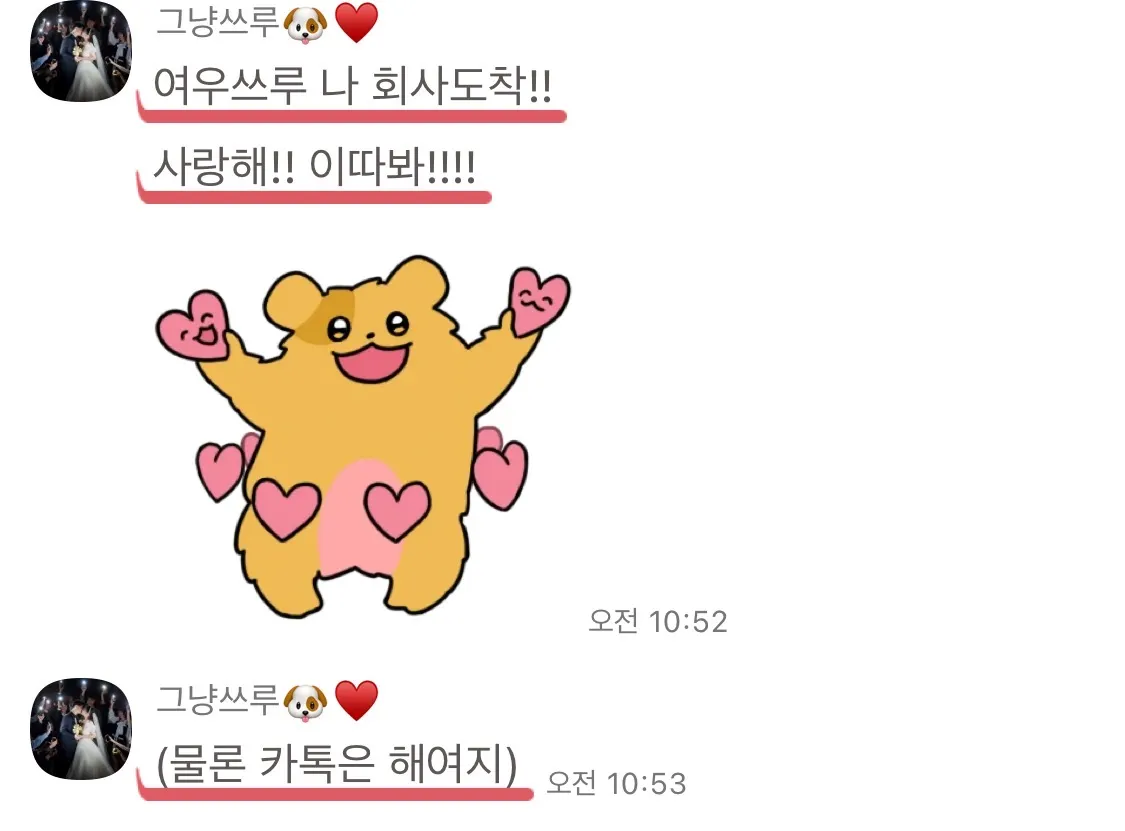 이따봐!!하고 끝내면 내가 카톡 안 하는 걸로 받아들일까봐 괄호도 채워놓는 짝꿍ㅎㅎㅎㅎㅎㅎ 다정한게 최고다