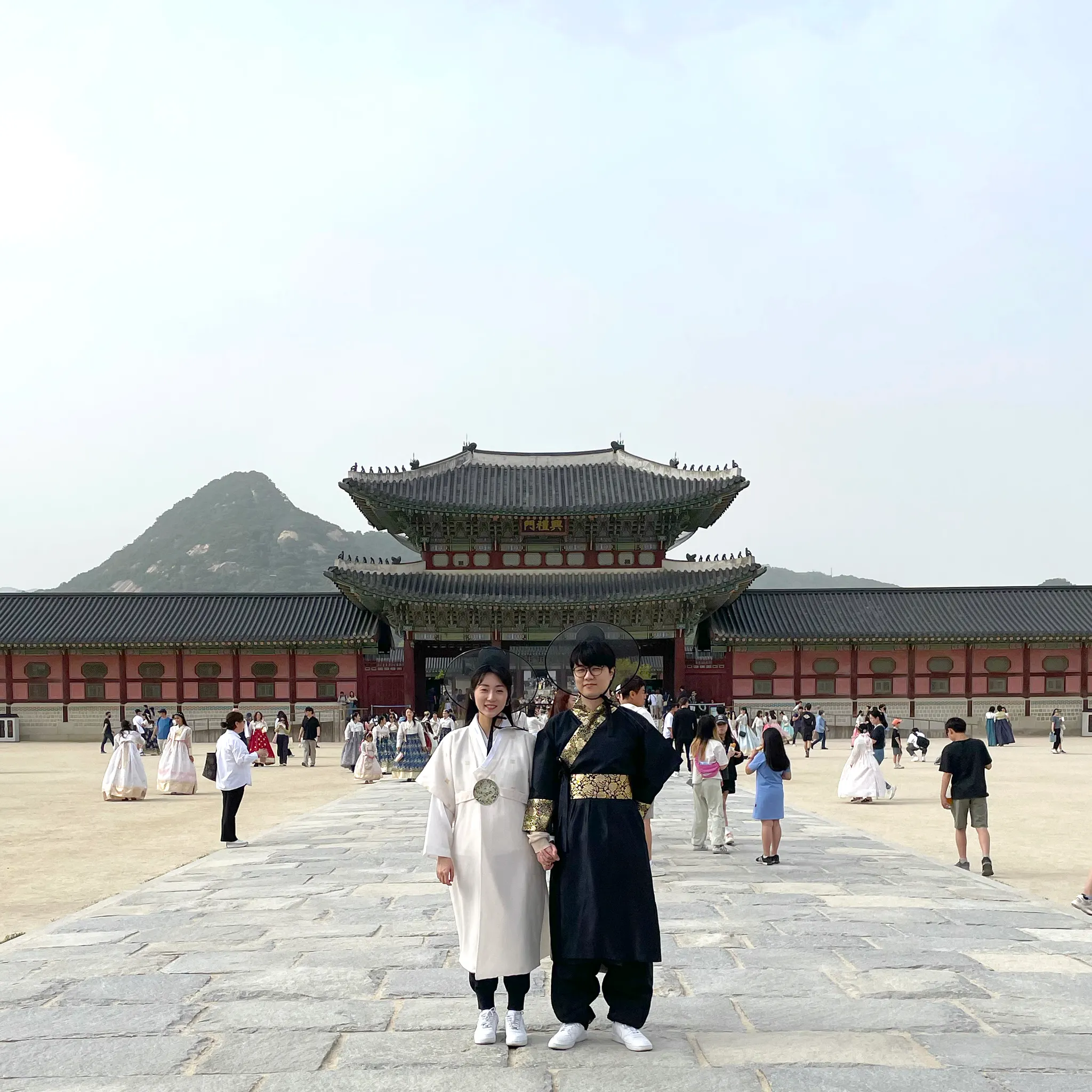 난생 처음으로 한복 빌려입고 경복궁 구경! 원래 둘 다 선비옷 입으려고 했는데 우리가 갔던 가게에는 없었어서 흑과 백 조합으로
