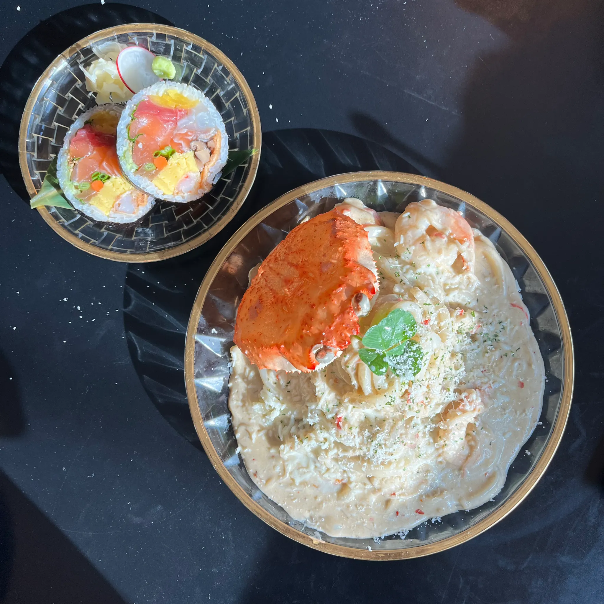 동생의 가장 친한 친구가 가족 일정이 있어 다른 지역에 간 토요일. 그래서 우리랑 노는데, 짝꿍이 맛있는거 사주고 싶다고 집 근처 맛집 데려가서 게 내장 크림 우동 파스타랑 후토마끼 먹고, 치킨난반도 먹고, 가쿠니 스테이크도 먹고, 깐풍가지튀김까지 먹었다