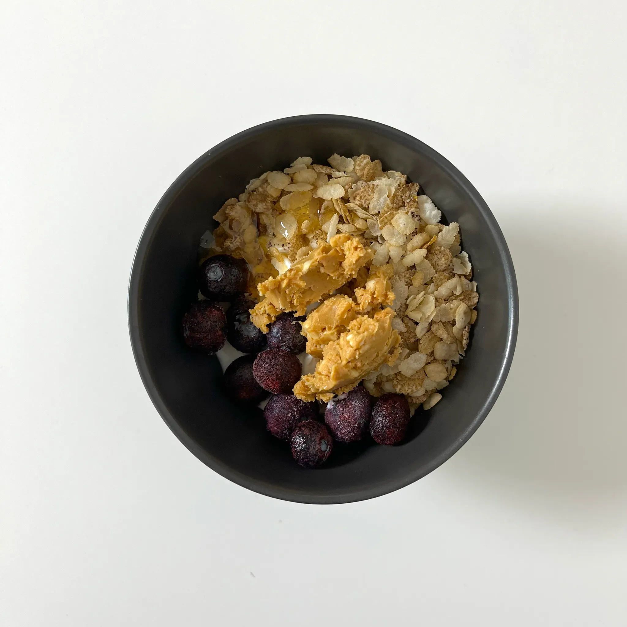 다음 날 점심은 다시 건강식으로. 요거트볼에 블루베리랑 땅콩버터 넣으니까 맛이 조금 더 풍부해져서 좋았다.