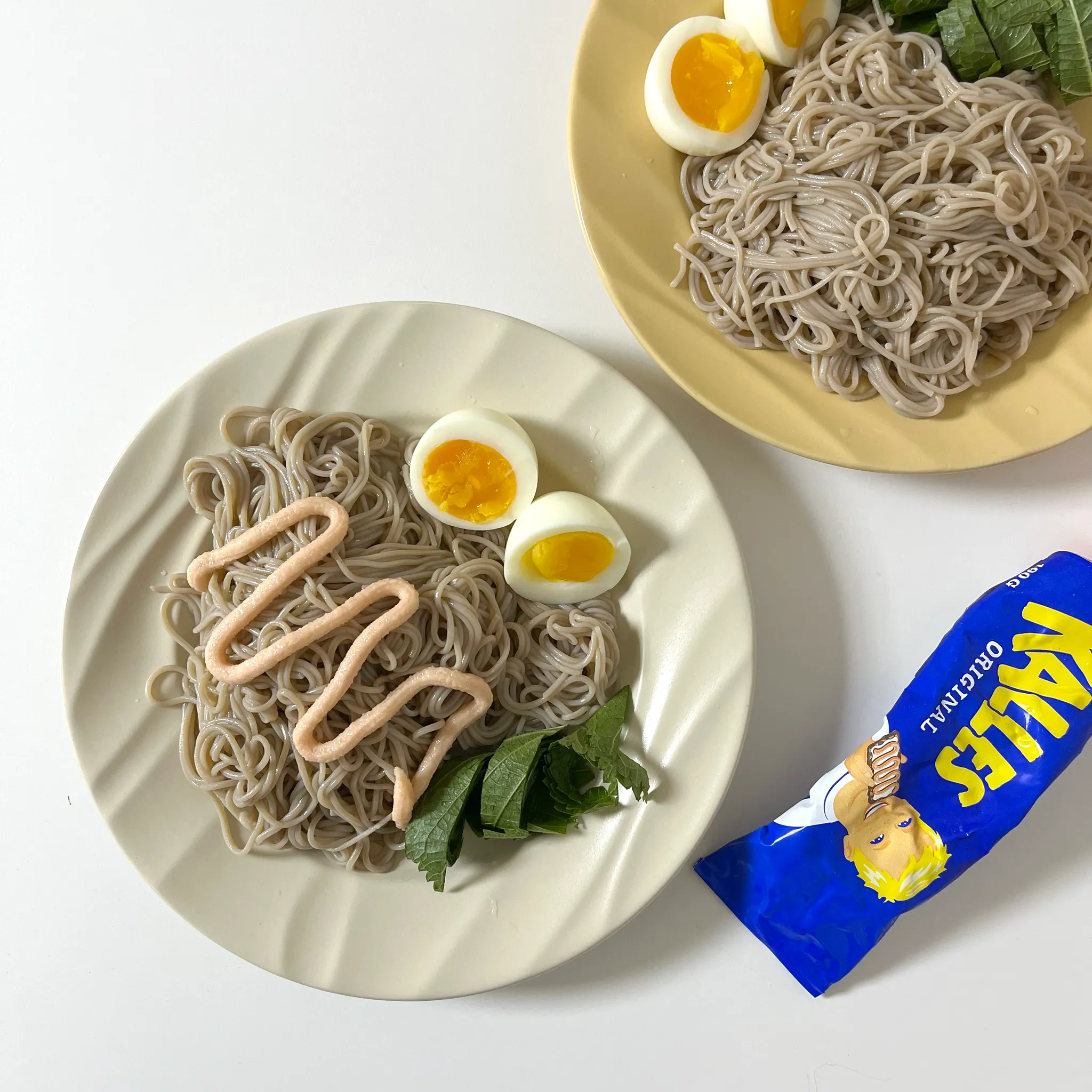 코크작가님 레시피, 칼레스 들기름 메밀면. 냉동 메밀면 쟁여놓으니까 바로바로 꺼내서 조리하기도 편하고 무엇보다도 맛있다. 칼레스 별로 안 좋아하는 짝꿍은 삼삼하게 먹고 나는 칼레스 범벅으로 먹음ㅎㅎㅎ