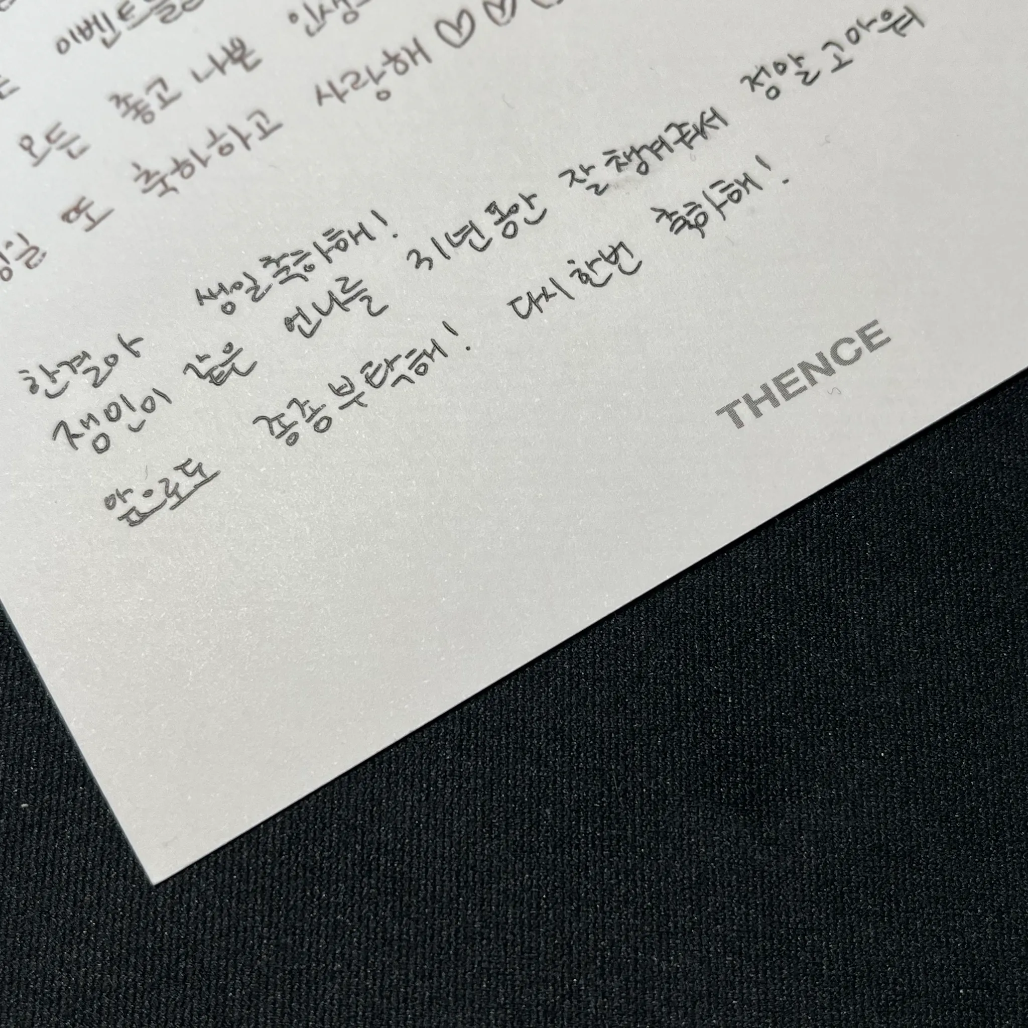 내 동생 생일 카드 밑에 한 마디 작성한 짝꿍. 잼민이 같은 언니라니이이이이🫤 짝꿍이랑 동생은 자꾸 나보고 잼민이라고 부른다ㅎ