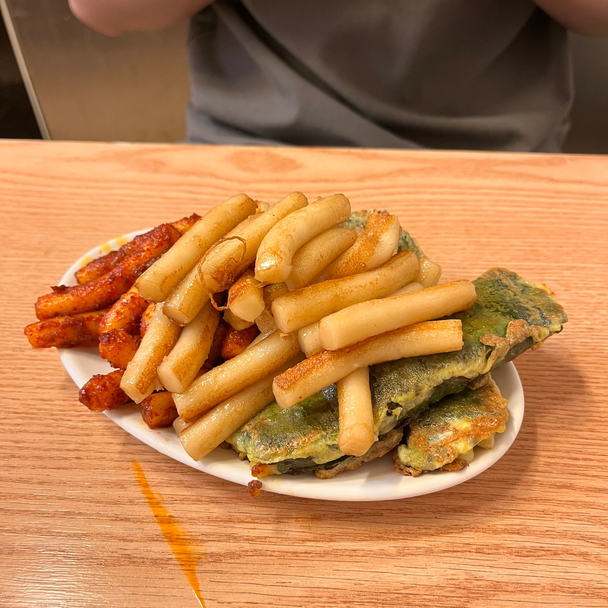 짝꿍도 나도 처음이었던 통인시장 기름떡볶이. 사실 떡을 기름에 들들 볶는다는 건 치트키나 다름 없다ㅎㅎㅎㅎㅎ 사장님이 고추장 맛이랑 간장 맛 같이 먹어보는 방법을 추천해주셔서 그렇게 먹음. 하지만 고추장 맛은 맵찔이인 나에게는 아주 조금 매콤했다. 언젠간 또 생각날 맛!