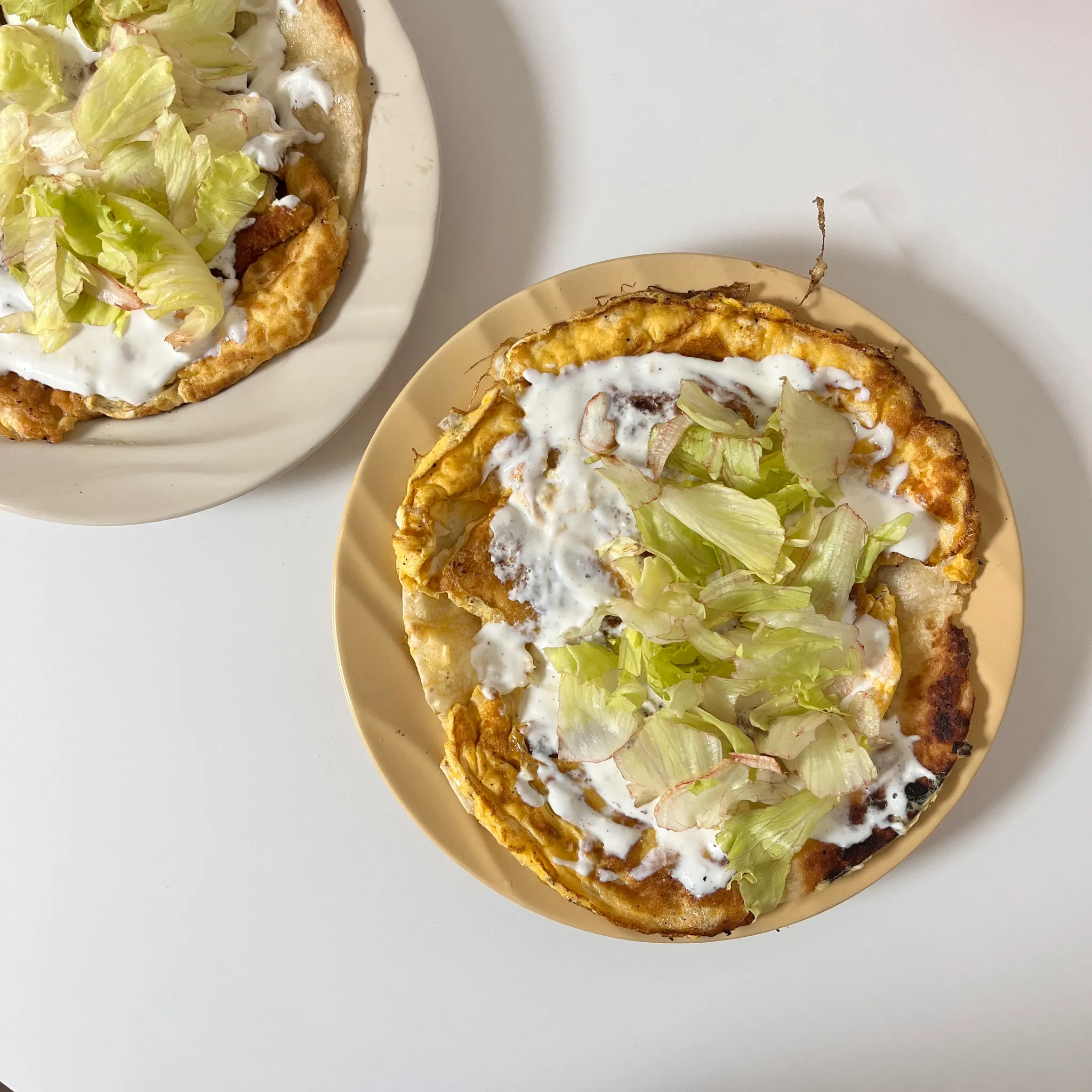 첫 시도해본 요리. 요거트 소스를 곁들인 치킨 너겟 오믈렛 또띠아. 맛있는 재료들 섞섞했으니 맛 없을 수는 없었지만, 짝꿍은 아주 쪼오오금 느끼하다고 했다. 다음에는 토마토랑 양상추만으로 해봐야지이