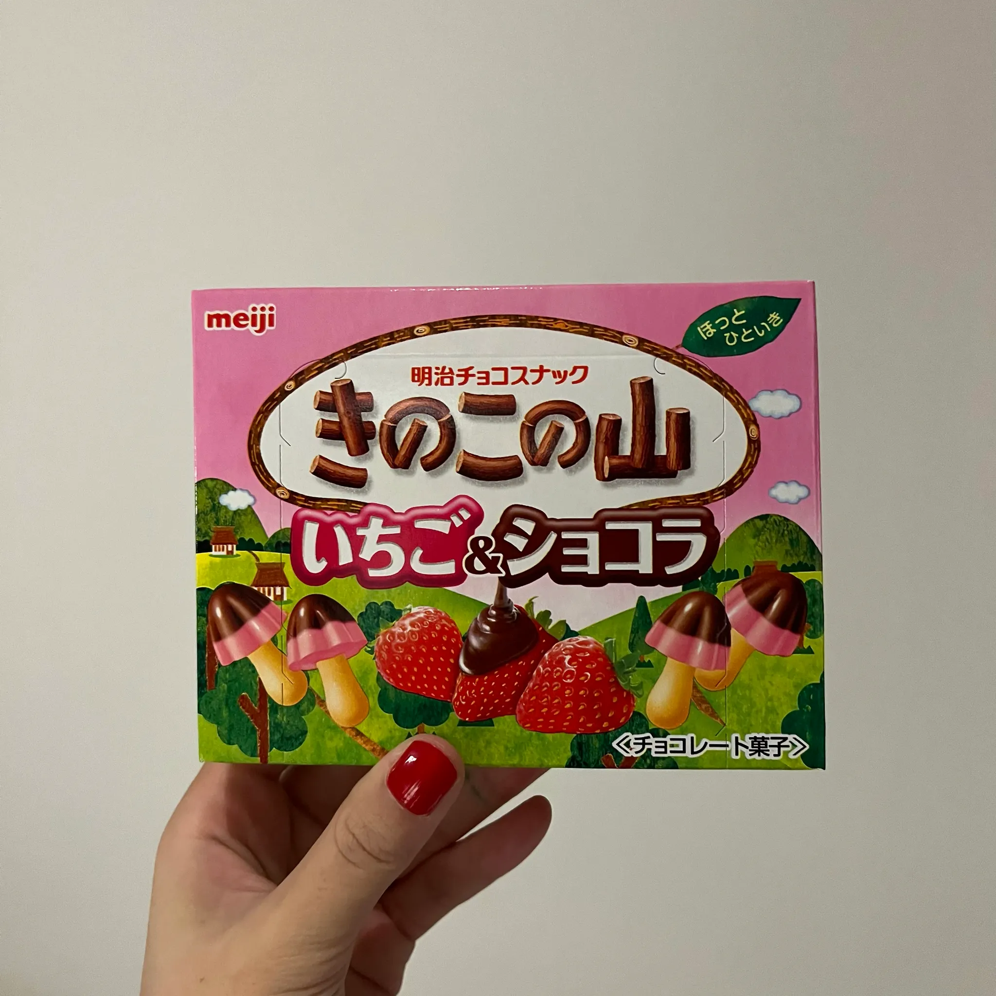 너무 귀엽잖아! 초코송이처럼 초코로만 되어있는 것도 있는데 나는 유니크하게 딸기랑 코초 둘 다 있는 버섯으로 픽. 우리나라 초코송이보다 초코 맛이 조금 더 진한 느낌적인 느낌. 양도 꽤 많다.