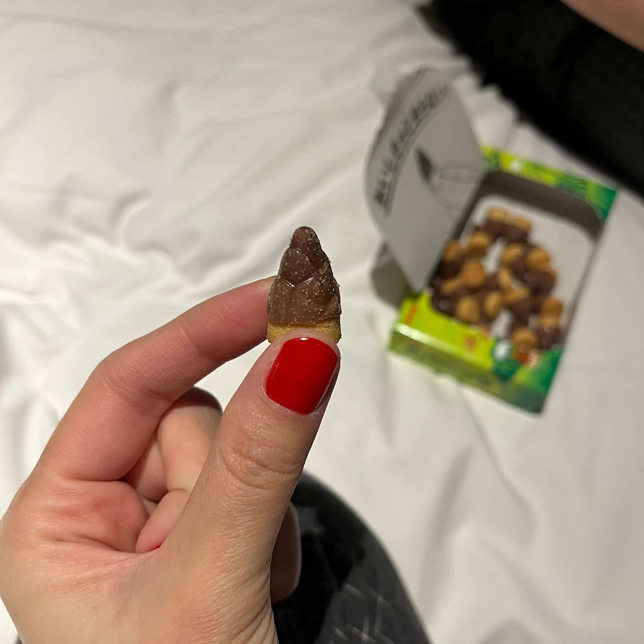 타케노코노사토. 죽순 마을이라는 뜻임ㅎㅎㅎㅎㅎㅎ 그래서 모양도 죽순 모양ㅎㅎㅎㅎ 너무 귀엽잖아!🥹 일본의 초코송이인 키노코노야마의 자매 과자이다. 키노코노야마는 아래에 나옴! 타케노코노사토는 초코송이처럼 과자 위에 초코가 덮여있는데, 과자 부분이 약간 통밀 느낌 맛. 짝꿍이 먹어보더니 딱 살찌기 좋은 아주 위험한 맛이라곸ㅋㅋㅋㅋㅋ 생김새도 귀엽고 이름도 귀엽고 맛도 있는 죽순 과자. 먹다보니 메이지 과자들이 전체적으로 약간 내 취향인 듯.
