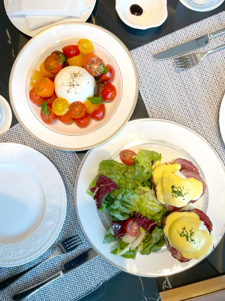 우리가 시킨 건 부라타 치즈 토마토랑 에그 베네딕트.
