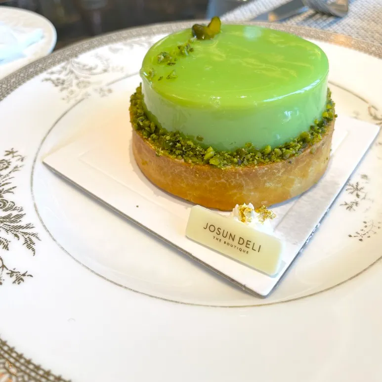 바로 옆에 있는 조선델리에서 사서 1914 라운지에서 먹은 피스타치오 타르트.