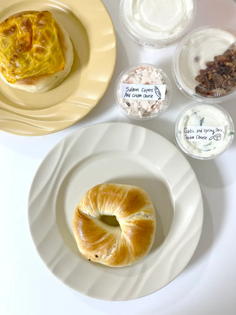 집에 와서 플레인 베이글이랑 감자 치즈 베이글 시식.
