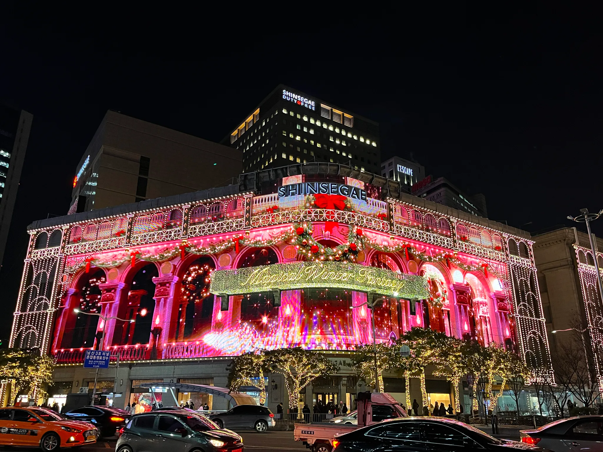 신세계 백화점 미디어 파사드의 주제는 ‘매지컬 윈터 판타지 Magical Winter Fantasy’. 눈 앞에서 커다랗게 펼쳐지는 영상을 보자면 정말 매지컬이고 판타지 그 자체임.
