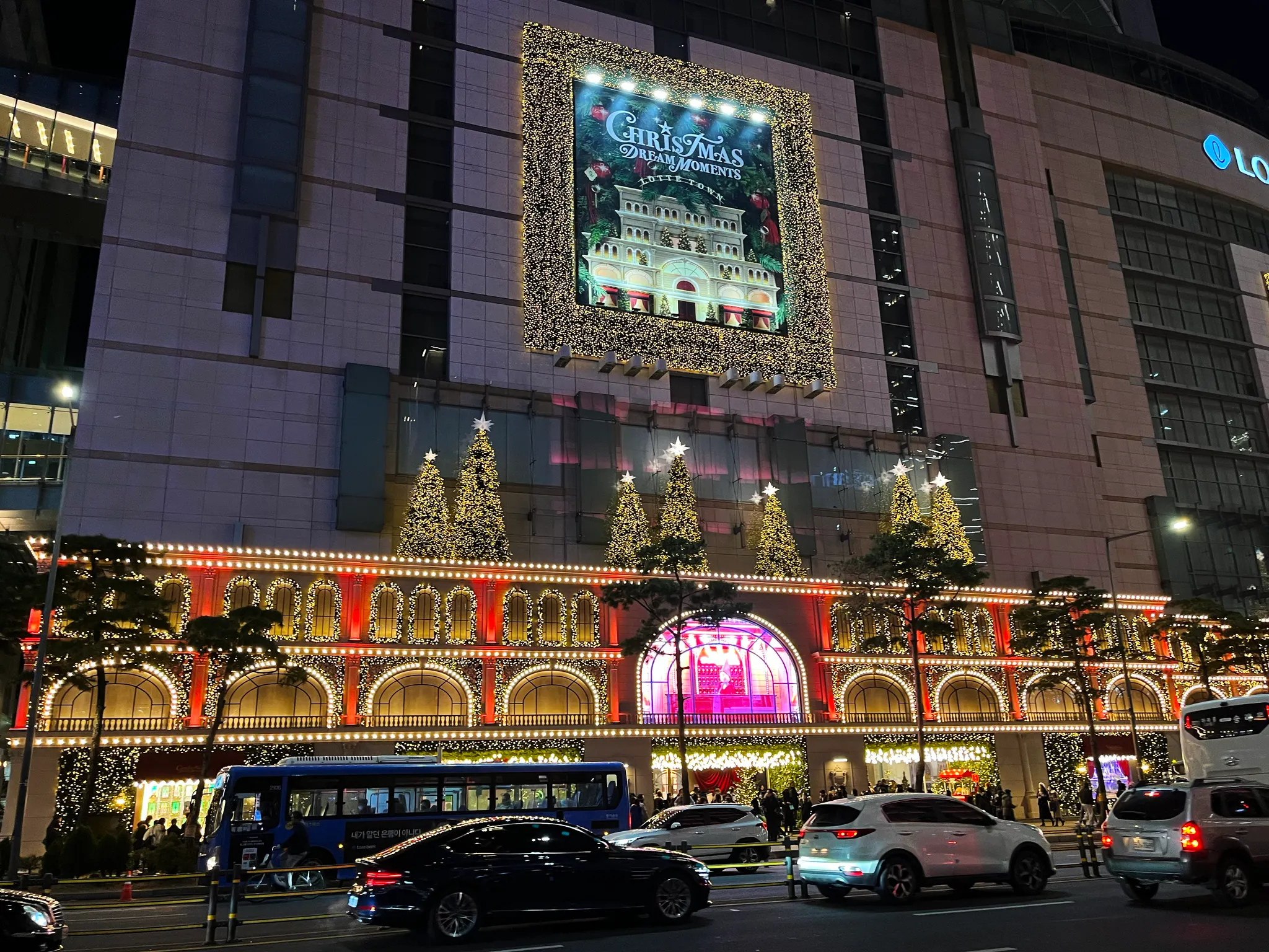 버스 타고 가면서 보니 롯데 백화점 정문 쪽이 정말 예뻤다. 나무들에 모두 전구 장식을 해 놓아서 아바타 판도라 행성 야경 보는 듯한 느낌이었음.