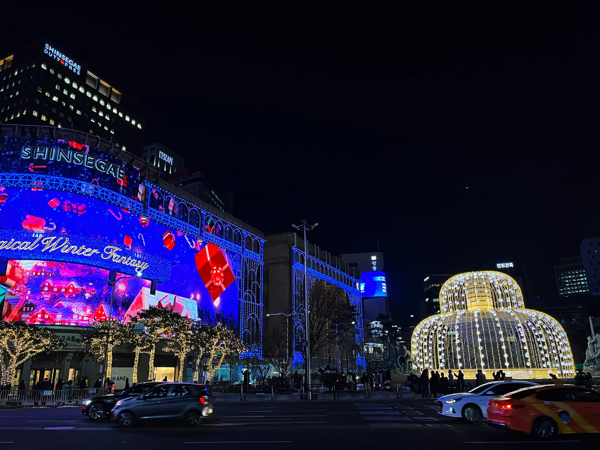 작년에 우연찮게 크리스마스 시즌에 명동에 갔다가 신세계 백화점 외관의 미디어 파사드를 보고 홀랑 반했던 나는 올해에도 어김없이 구경하러 갔다. 작년에는 타이밍이 잘 맞았던 건지 꽤나 한적하게 봤었는데 올해에는 사람 진짜! 정말! 엄청! 많았음. 심지어 평일인데도!