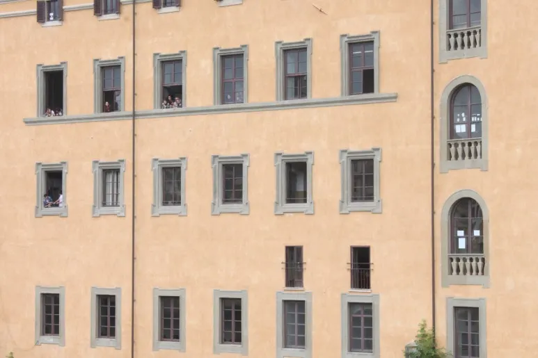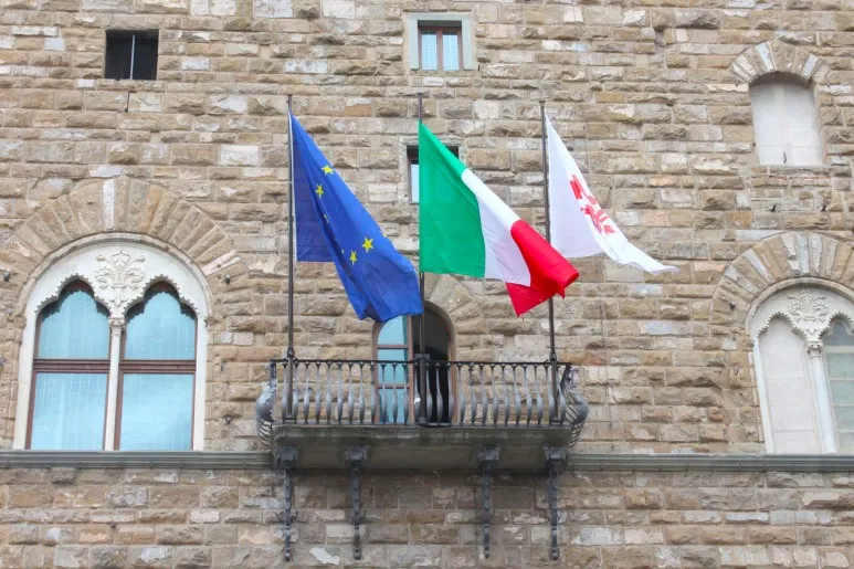 유럽연합과 이탈리아, 피렌체의 깃발이 줄 서 있다.