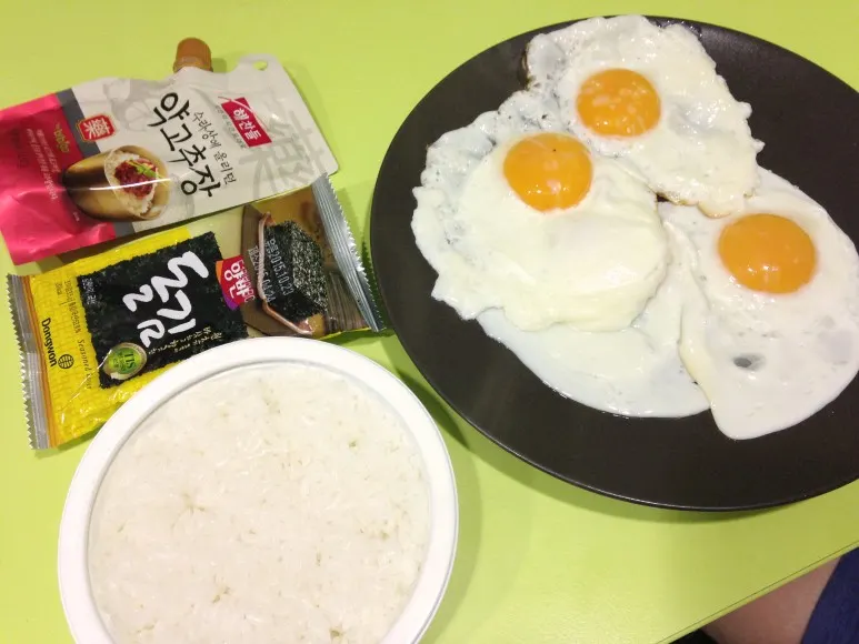 빈약한 재료지만 이렇게 간이 비빔밥을 해 먹었다.