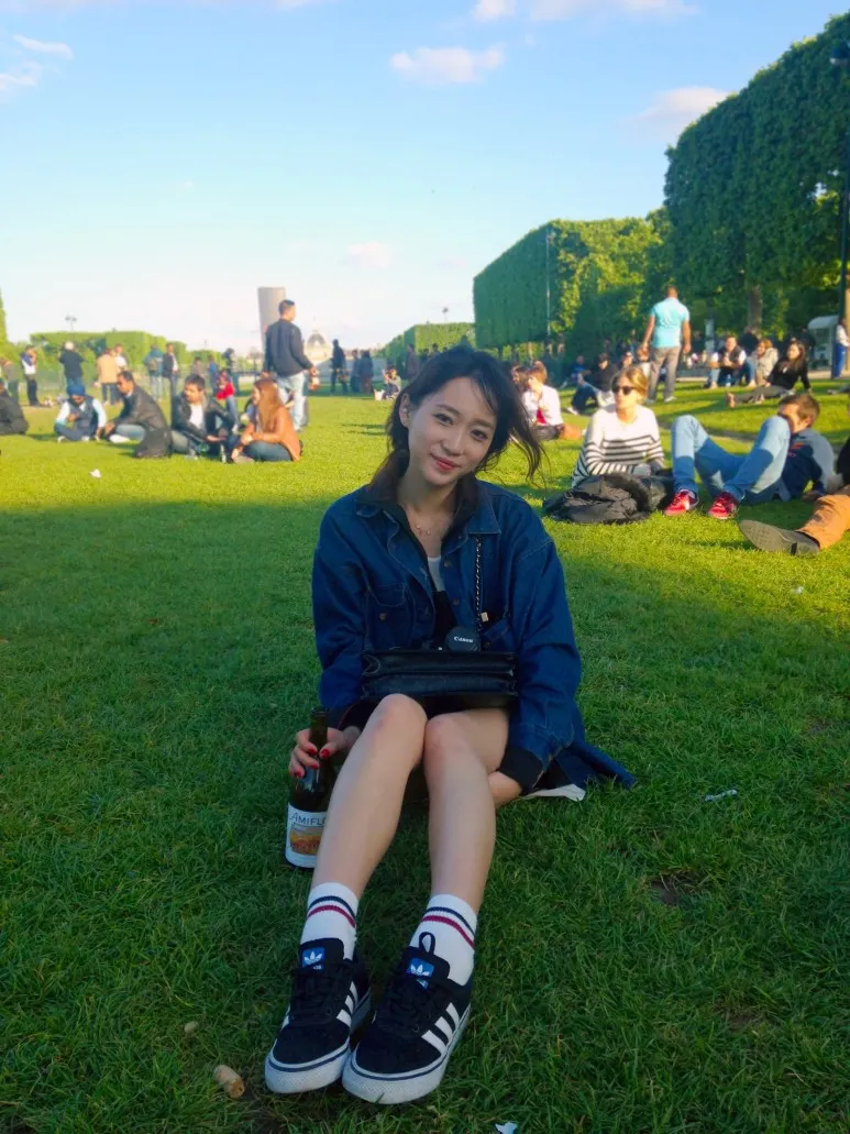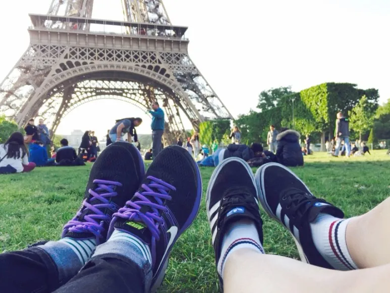 우리도 다른 사람들처럼 에펠탑이 잘 보이는 잔디에 자리잡았다.