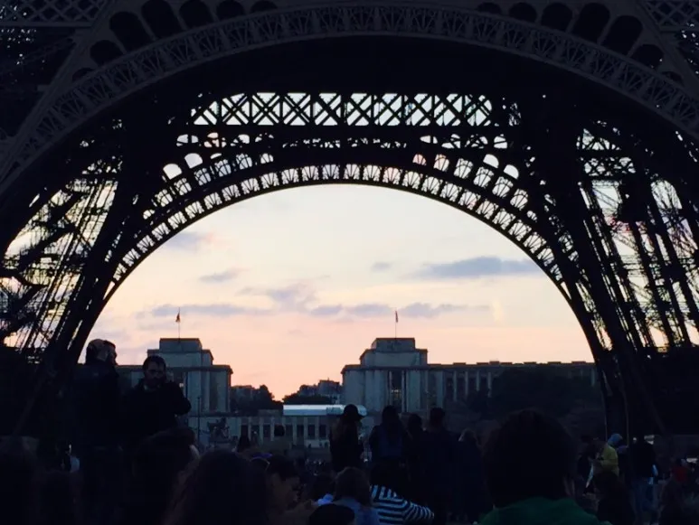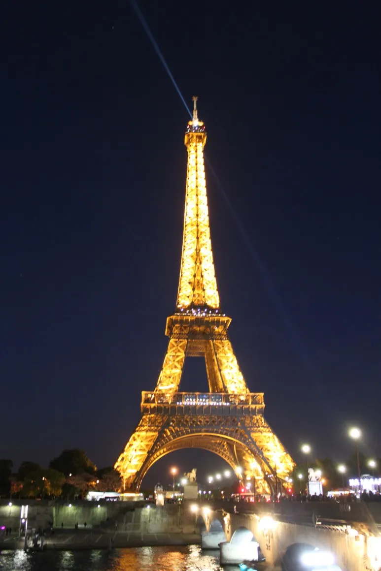 아까와 같은 위치에서 찍은 밤의 에펠탑.