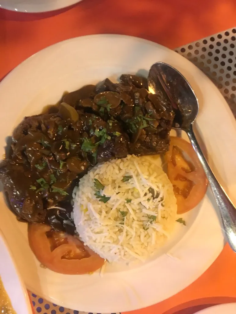 새우 커리와 라자냐와 양꼬치와 비프 덮밥.